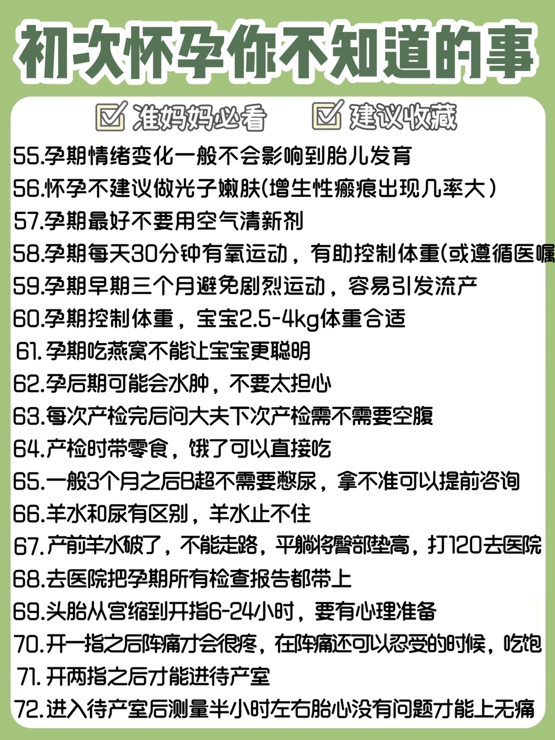 ㊙️今天分享的小知识,准爸妈们学会了吗?希望准妈妈们产检一路绿灯,顺利生下健康可爱的小宝宝~