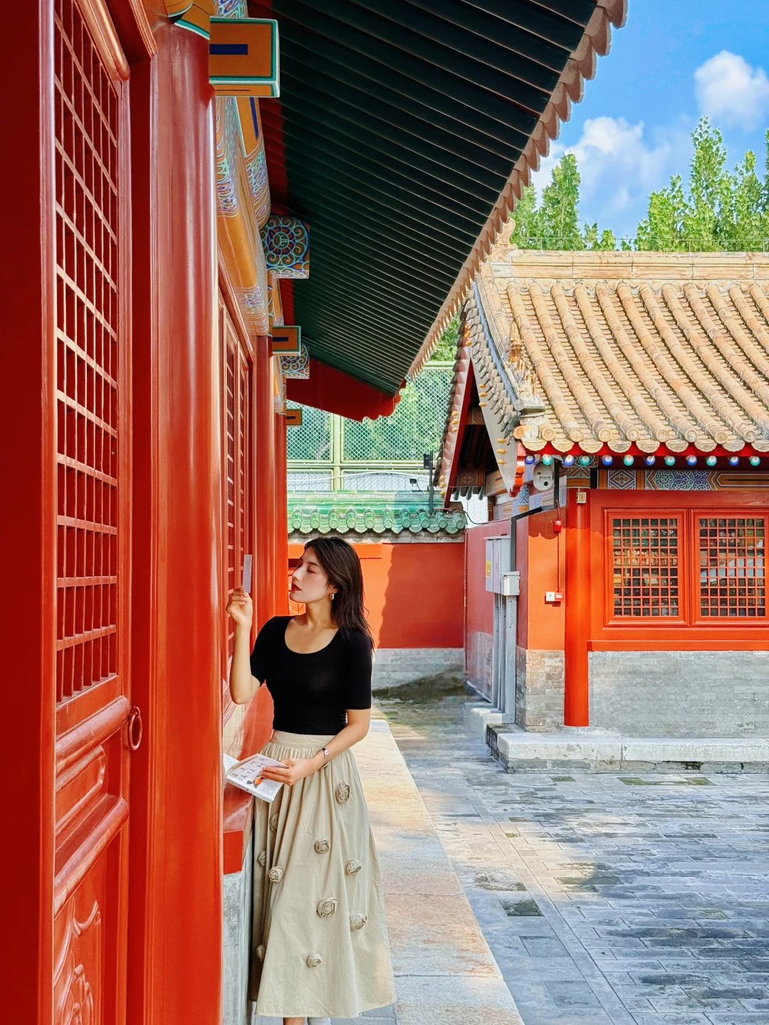 📍太岁殿前广场偏殿:一排红色柱子特别有纵深感,人物可站在长廊一侧5x拍摄‼