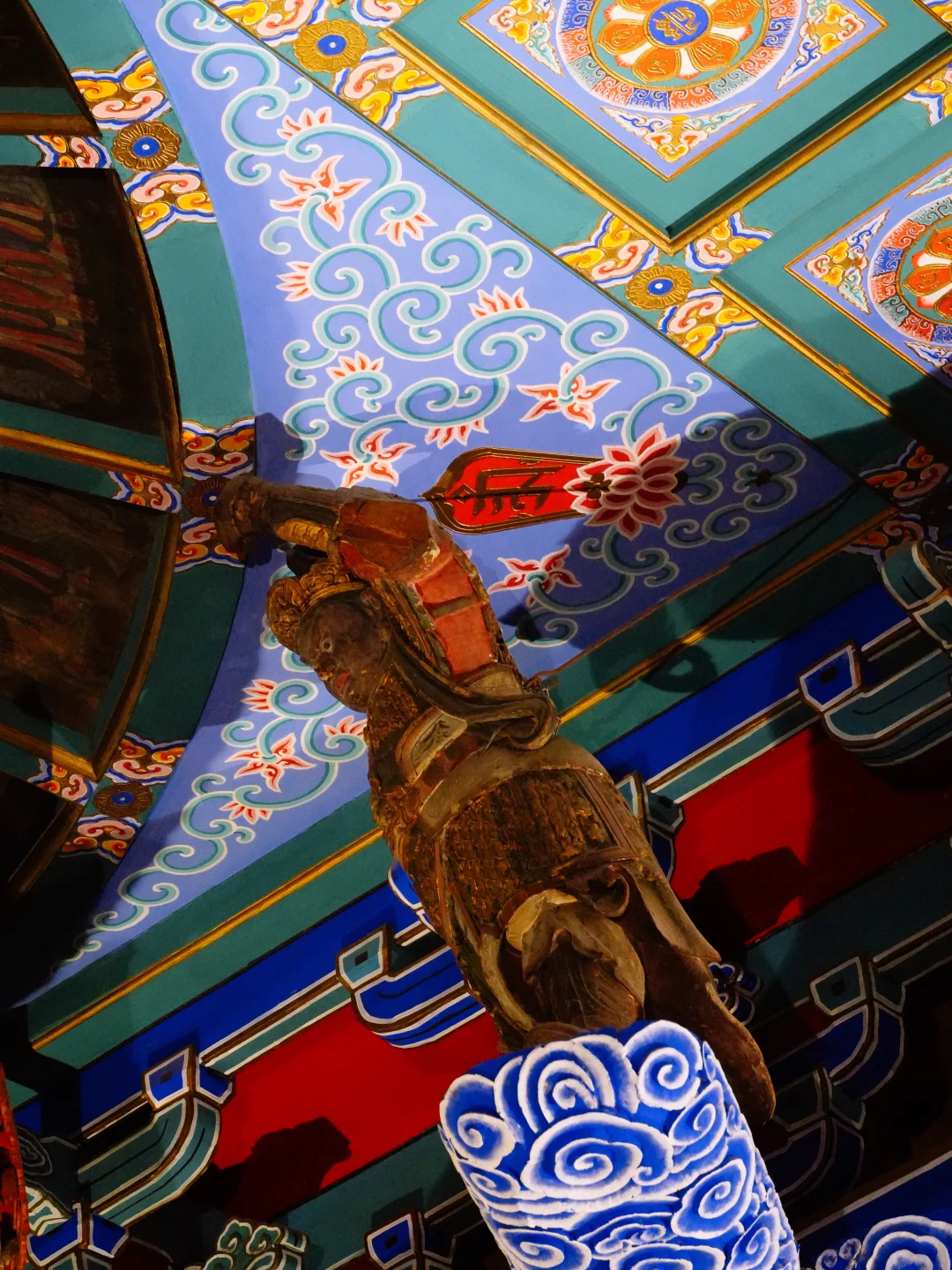 太岁殿内,明代孤品,上下六层,四周有四大天王托举,琼楼玉宇、祥云缭绕的天宫盛景,抬头仿若置身星河,超过1400颗星星金光灿烂,宛若真实星空,被誉为“稀世国宝”。✨