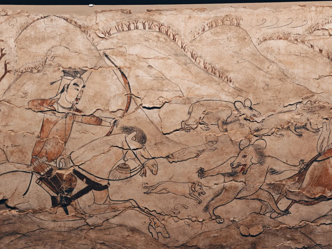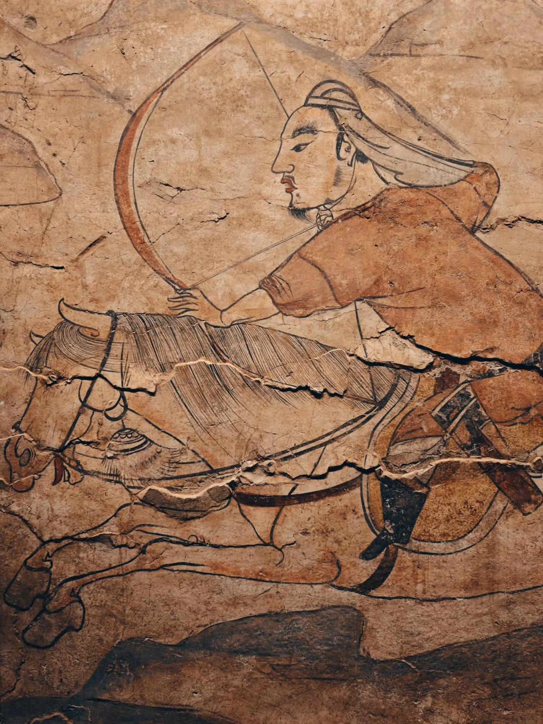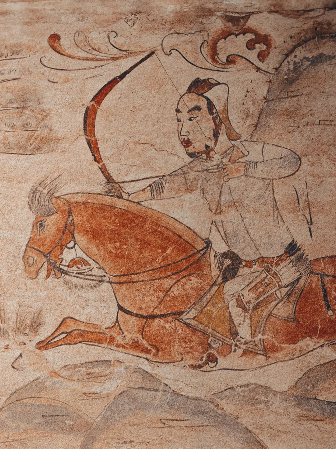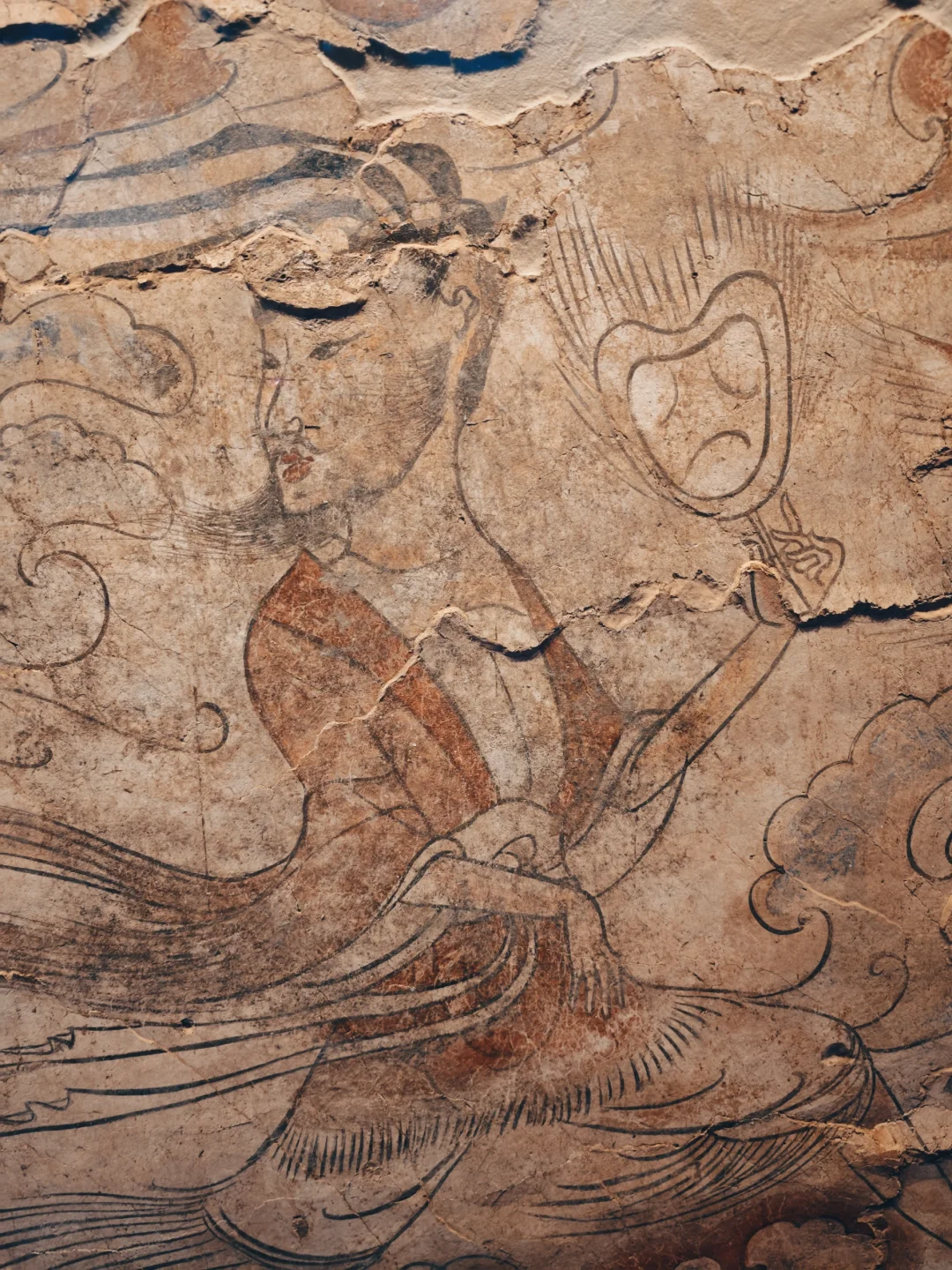 🛖黄土堆砌的墓道深处,一群画中人物正对你挤眉弄眼,骏马的眼神如影随形,而1400年前的乐队竟邀你合奏——这里可能是全山西最“不正经”的博物馆 🏤走进“一眼千年”遗址厅,玻璃地板下真实的墓道赫然在目。抬眼望见徐显秀墓《宴饮图》时,我差点笑出声—— 那位北壁正中央的徐大人,举着酒杯一脸“全场由我买单”的傲娇表情,旁边夫人端庄微笑,活脱脱古代版“领导讲话,夫人鼓掌”现场。 最抢戏的是那群乐伎 🧚‍♀️: 弹琵琶的腮帮子鼓得像含了俩鸡蛋,吹横笛的脸颊凹陷似被吸尘器袭击,打鼓的更是全身每个细胞都在呐喊“节奏不能停!” 馆长说这叫“铁线描”绝技——当年画师用铁丝般刚劲的线条,把人物微表情拿捏得死死的,放今天绝对能当美妆博主画眉教程。 🏛️站在水泉梁墓壁画前,我又被时尚暴击了: 侍女梳着“双马尾”丫鬟髻,武士蹬着尖头小皮靴,贵妇披着波西米风条纹裙。 尤其那个牵驼人,卷发高鼻梁配紧身裤,活脱脱北齐版“精神小伙” 🏫最让我破防的是娄叡墓《回归图》: 载货骆驼明明累得翻白眼,背上猴子还嬉皮笑脸荡秋千,原来打工人辛酸史早被古人画透了。 ⚔️北齐如同一颗短暂爆发的超新星,28年的时间里,6位皇帝更迭,堪称“六味地黄丸”,不过胡汉文化碰撞却催生出艺术高峰,壁画、石窟、音乐等成就为隋唐统一奠定美学基础。 正如徐显秀墓中那位粟特乐师跨越千年的凝望——北齐的混乱与辉煌,最终在敦煌的飞天与长安的宫廷乐中找到了回响。