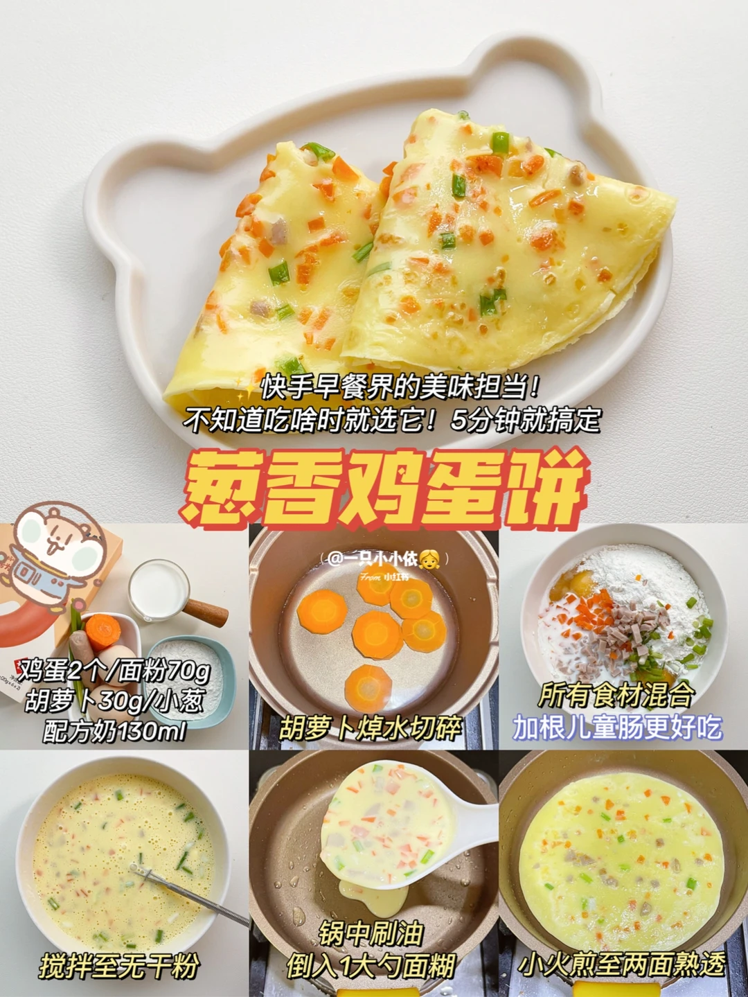 ✨食材没有严格比例,稀一点是蛋饼、稠一点是小饼