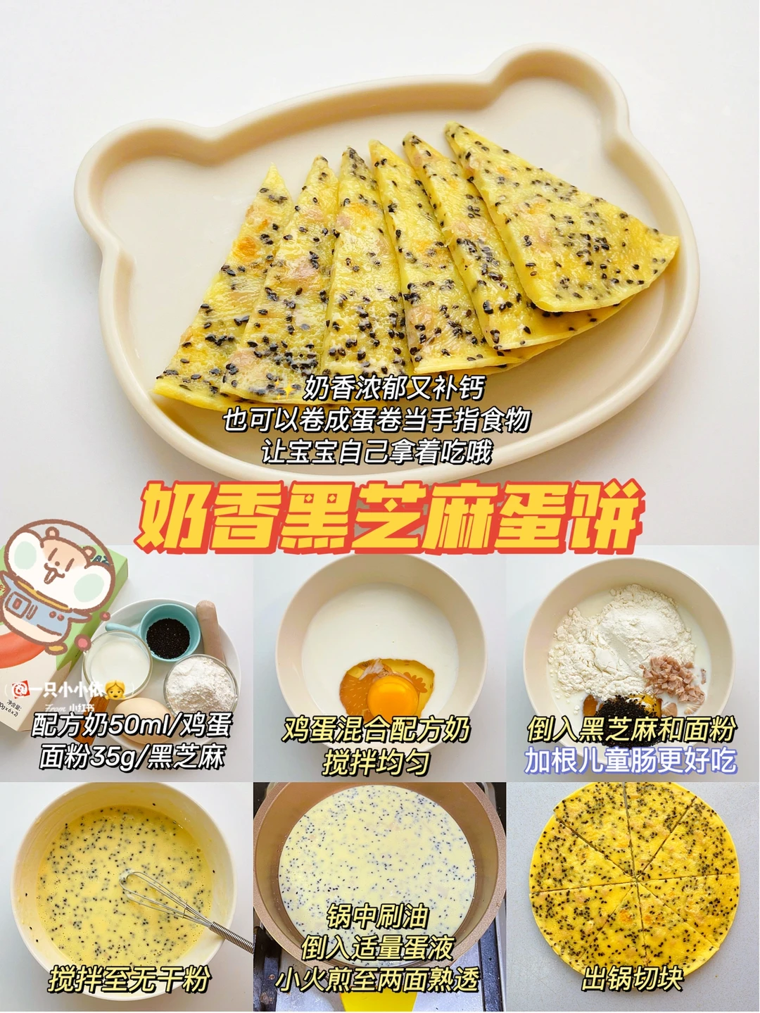 🔹食材:配方奶50ml、鸡蛋、面粉35g、黑芝麻
