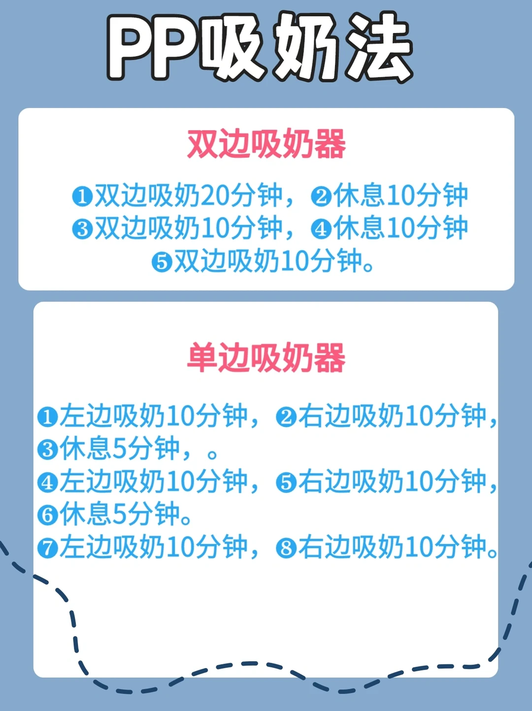 图六分享了PP追奶法的原理,这绝对是一个有效的追奶法,但也绝对不是对每个人都有效果,而且这个方法太辛苦了,使用不当会损伤乳头,尤其它的使用关键是在晚上11点到凌晨5点的时候吸奶,一次花费一小时,真的又困又累,建议妈妈们先白天试试,习惯了再晚上试,整个吸奶过程吸力调小,吸不出来的时候,一定要调到泌乳或按摩模式,PP追奶法超过一个星期都没有效果,请妈妈们放过自己,用这个时间好好的休息,拿出十足的精力陪伴宝宝比追奶更重要。