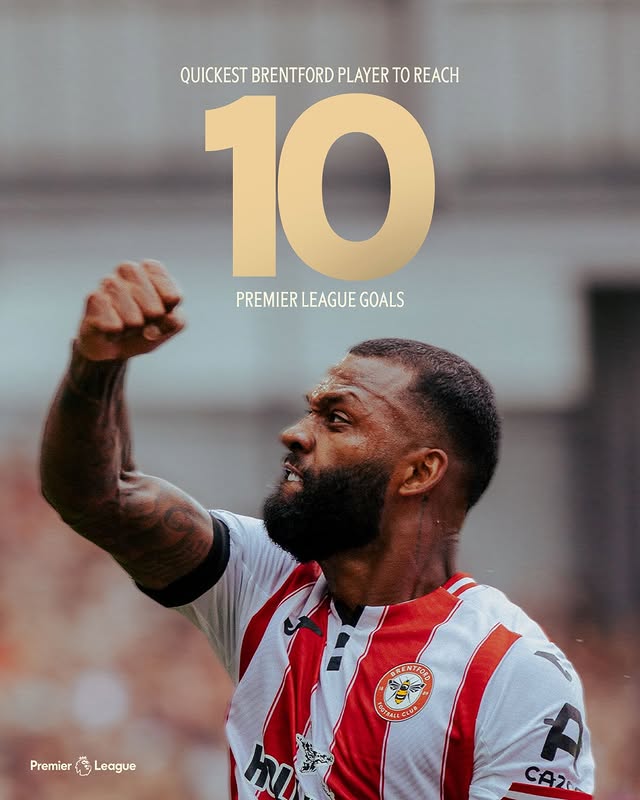 布伦特福德官方数据统计,伊戈尔-蒂亚戈成为俱乐部队史最快打入10粒英超进球的球员。