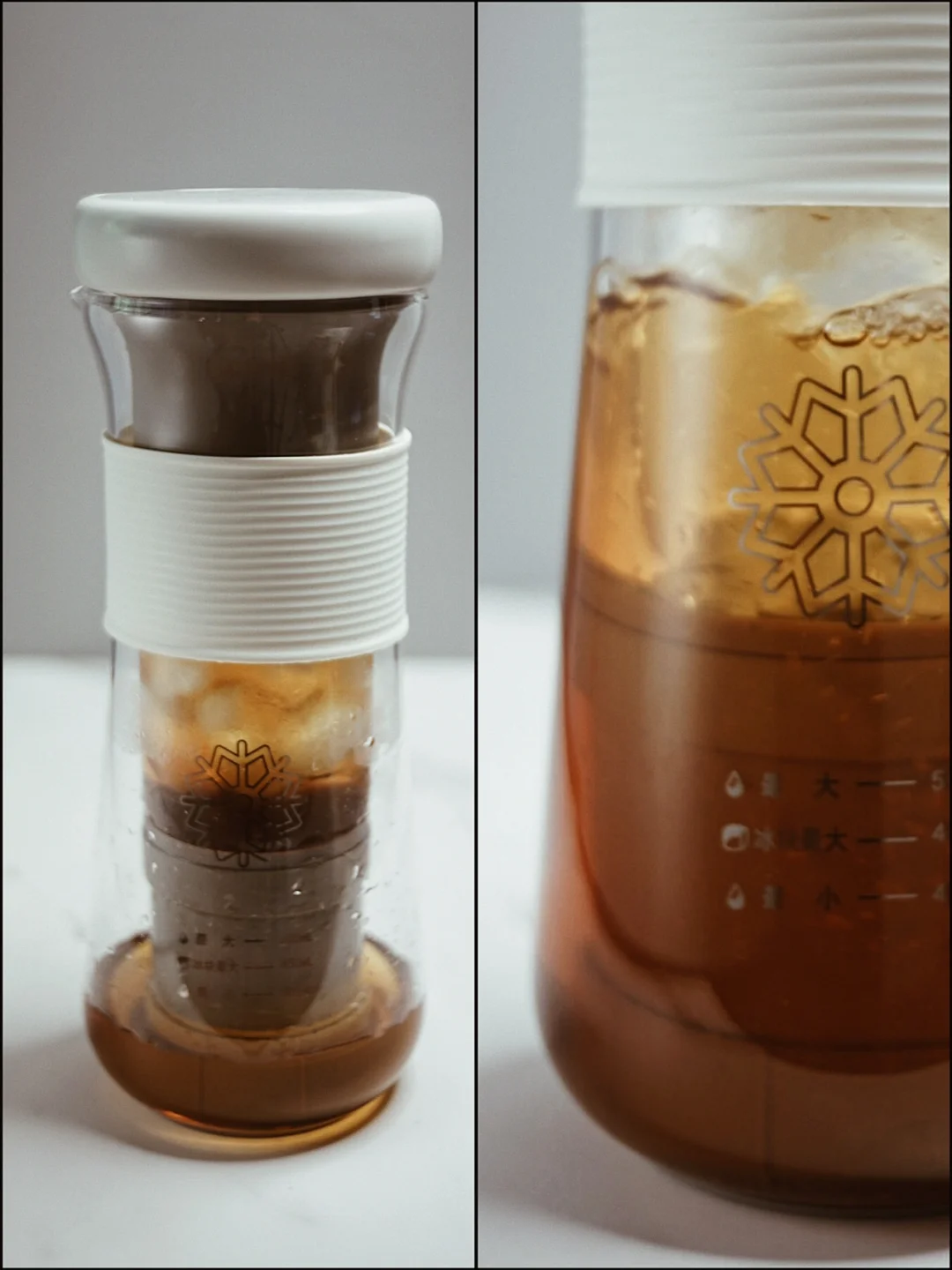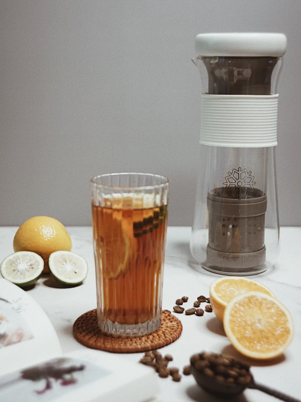 6月的天气,微风中透着闷热的潮气 火辣辣的太阳,让衣衫被汗液浸透 一口冰凉清爽🍃回味甘甜的冷萃咖啡 早已成为了我夏日的心头好 实际上,一杯好的冷萃咖啡需要经过长达8个小时左右的萃取💦 等待的过程,对于缺乏耐心的我实在是不太友好 好在今年拥有的膳魔师享萃机,让我找到了与夏天和解的方式🏄🏻‍♀️ 15min就get了一杯清爽酸甜的青柠气泡冰美式🍋 - ·取20g咖啡豆磨成粉末,放入物料杯,依次放好滤网、玻璃内胆、冰块,并与机头旋紧 ·在玻璃壶里倒入400ml清水,双击开关,等它有个排气的过程完成以后,选择你想要的浓度,点击萃取键,就可以啦 ·萃取的过程中,准备好切片的青柠檬和柑橘放入杯中,将萃取好的冰咖啡缓缓倒出 💦冷萃后的咖啡入口酸涩感降低,与清新酸甜的柠檬🍋和柑橘🍊搭配,味蕾的体验简直妙不可言。再也不用等待漫长的8个小时了 - 膳魔师享萃机对于咖啡的萃取有淡、中、浓3个浓度可以选择。当水泵开始抽水,让水慢慢的吸入到咖啡粉内部,经过冰块🧊水再回到下方咖啡粉的区域,通过上下抽水和挤压水的过程🔁咖啡粉的风味得到了完全萃取。我选择的淡的浓度↖️只需要等待15min⏰就能喝到一杯口感干净清爽的冷萃咖啡啦 不仅可以制作冷萃咖啡☕还可以制作冷萃茶🍵不仅可以用冷水萃取,也可以用低于60℃的温水。一次可以萃取500ml,两个人喝也妥妥的,用完的咖啡渣不要扔哦,日常生活里也有hin大的用处 ⚠️Tips:咖啡渣的妙用 ❶家中喜欢养花的朋友,可以把咖啡渣拿来做成植物肥料,直接添加到土壤中,特别适合喜欢酸度土壤的植物,例如杜鹃花、玫瑰 ❷咖啡渣可以制成空气清新剂。将咖啡渣晒干之后,放入小布袋里,放在冰箱或者卫生间里,可以有效地去除空气中的异味。 ❸将晒开的咖啡渣放入茶包,放在容易受潮的柜子里,利用咖啡渣的吸水性,可以吸潮的同时充当芳香剂 ·感谢膳魔师品牌的赠予体验·