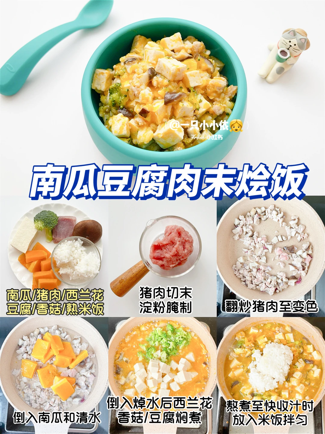 🔸食材:南瓜/猪肉/西兰花/豆腐/香菇/熟米饭