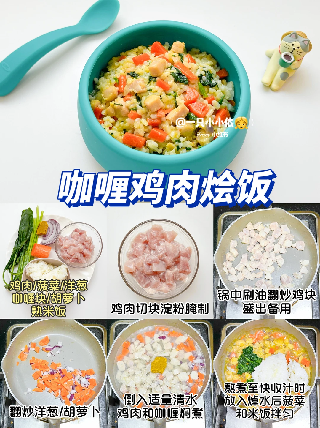 🔸食材:鸡肉/菠菜/洋葱/咖喱块/胡萝卜/熟米饭
