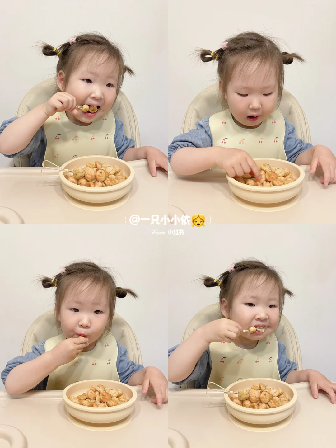 依依对虾简直没有抵抗力,今天做的迷你鲜虾一口酥,几乎分分钟光盘👏🏻味道真的绝了!有肉有菜、鲜嫩补钙,夏威夷果油自带黄油味,不用放调料也超鲜美😝