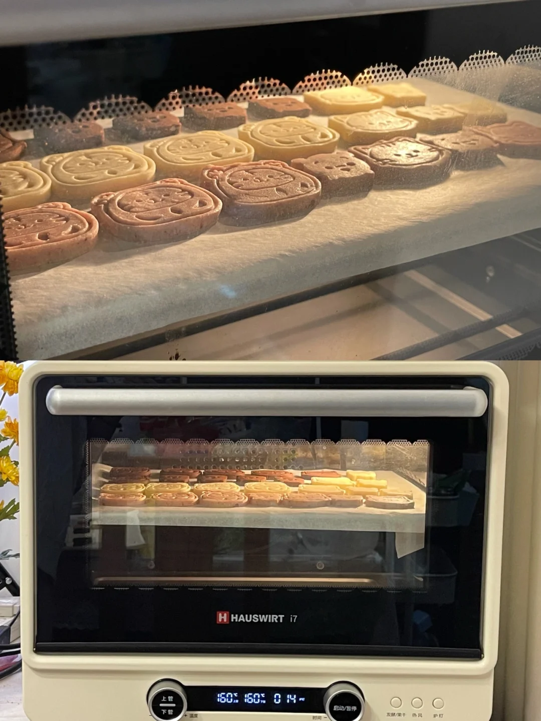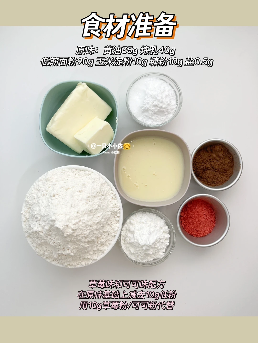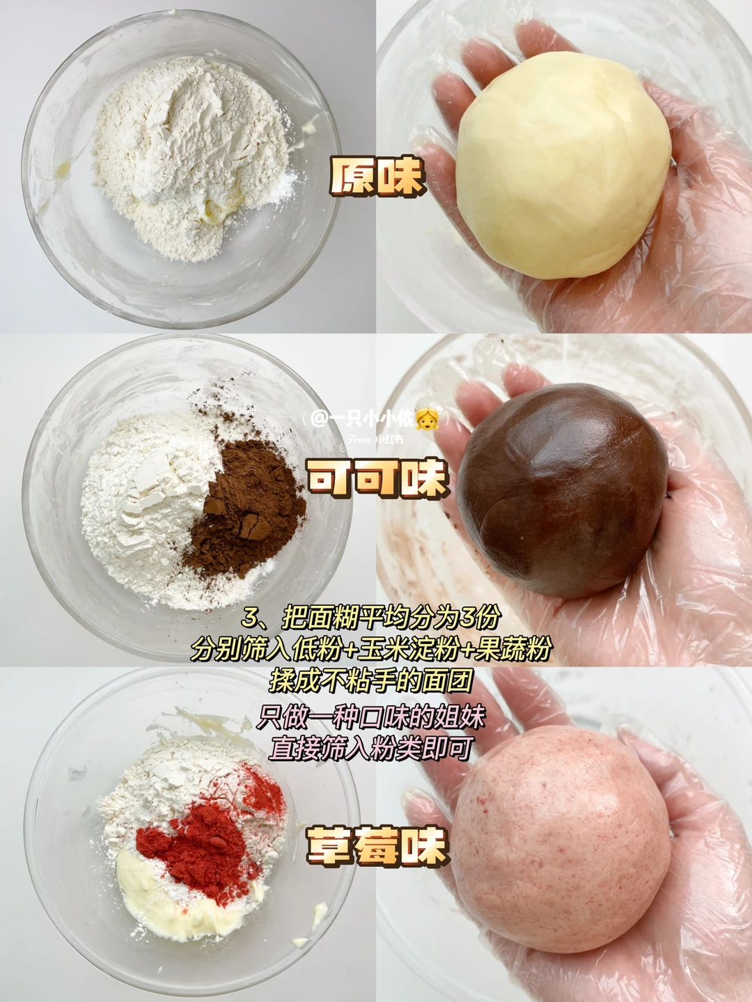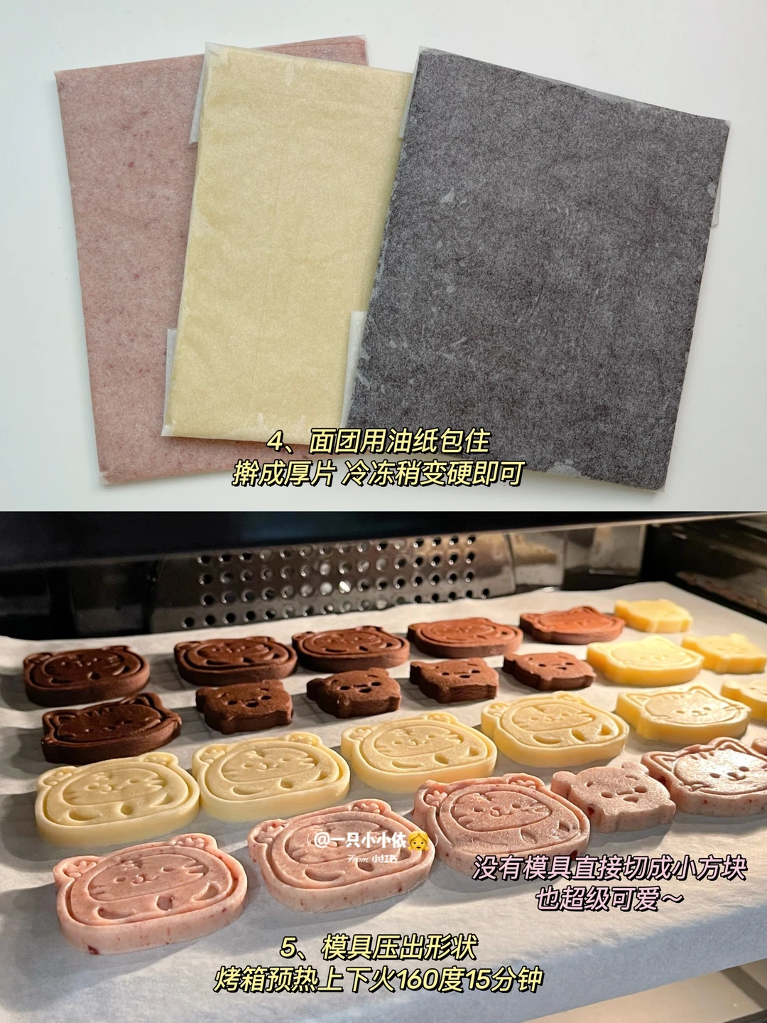 🐯小脑斧和它的朋友们组团来卖萌,这谁顶得住啊!当然是嗷呜一口全吃掉[斜眼R] 🧚‍♀️超简单的炼乳小饼干,香甜酥脆嘎嘣脆,烘焙小白也能成功👏🏻一次解锁三种口味,原味、草莓味、可可味,是追剧小零食,也是哄娃神器!打包起来送人也🉑️哦,投喂小可爱bi备! · 🌈食材准备 👉原味:黄油35g、炼乳40g、低筋面粉90g、玉米淀粉10g、糖粉10g、盐0.5g 👉可可味:黄油35g、炼乳40g、低筋面粉80g、玉米淀粉10g、糖粉10g、盐0.5g、可可粉10g 👉草莓味:黄油35g、炼乳40g、低筋面粉80g、玉米淀粉10g、糖粉10g、盐0.5g、草莓粉10g · 🌈制作步骤: 1⃣️黄油软化,加入糖粉打发至细腻蓬松; 2⃣️倒入炼乳搅拌至无干粉 3⃣️筛入低粉+玉米淀粉,揉成不粘手的面团(如果同时做三个口味,就将面糊平均分为3份,筛入对应的低粉/玉米淀粉/果蔬粉); 4⃣️面团用油纸包住,擀成厚片,冷冻稍变硬后取出,用模具压出形状; 5⃣️烤箱预热上下火160度15分钟 · 🌈唠叨几句—— ✨没有模具的姐妹,直接切成小方块也很可爱 ✨可以将果蔬粉换成南瓜粉、紫薯粉、抹茶粉等,解锁更多口味; ✨烤箱以自家温度为准,不要烤糊了 ✨烤好后记得密封储存,不然会受潮,5天内吃光光哦 · 🐯萌宠炼乳小饼干,双击屏幕随时抄作业哦! 🐯感谢海氏i7烤箱邀请体验,真诚分享[大笑R] 👋下期见啦