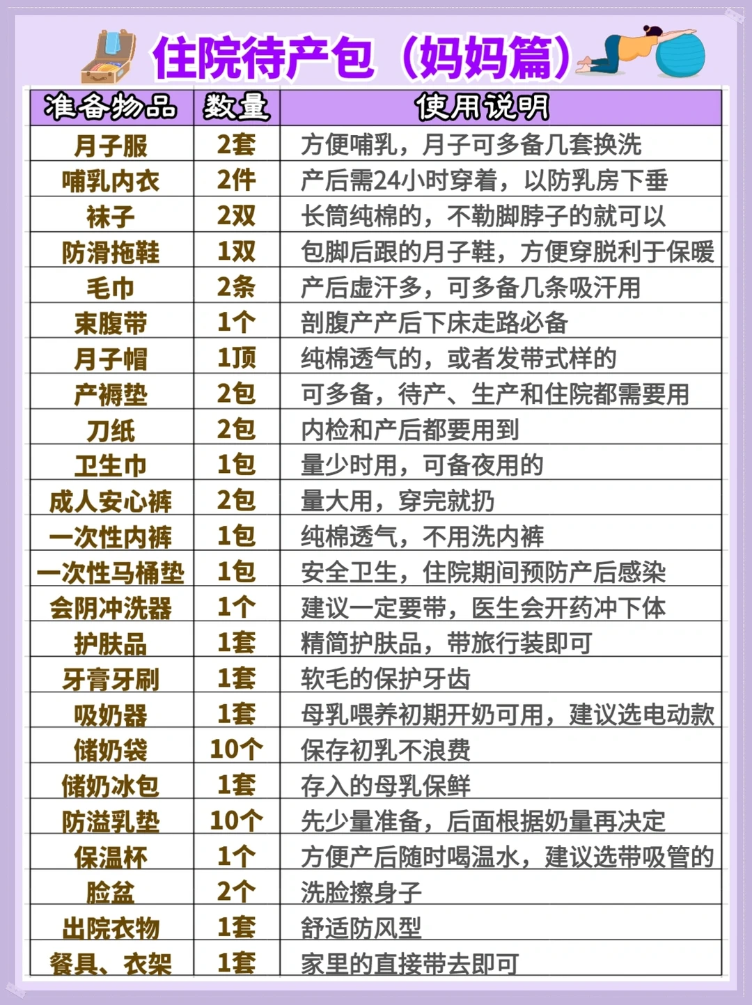 ▪️住院待产包——妈妈篇