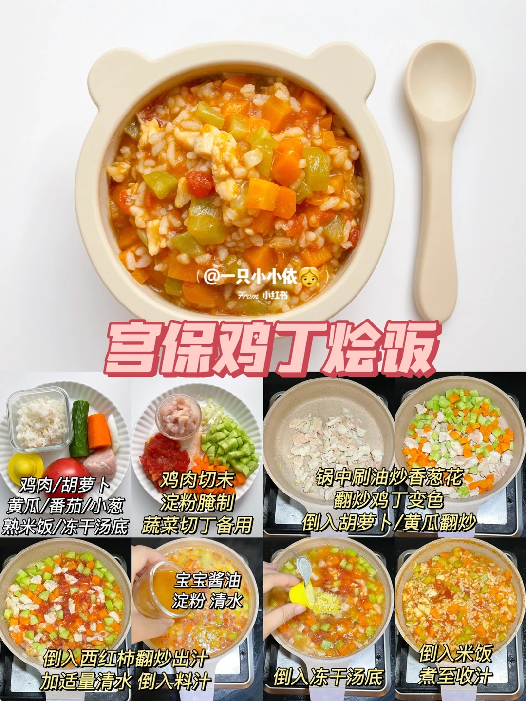 🔹步骤:鸡肉切末淀粉腌制,蔬菜切丁备用;锅中刷油炒香葱花,翻炒鸡丁变色,倒入胡萝卜/黄瓜翻炒;倒入西红柿翻炒出汁,加适量清水和倒入料汁(宝宝酱油+淀粉+清水),再倒入冻干汤底;倒入米饭煮至收汁✅