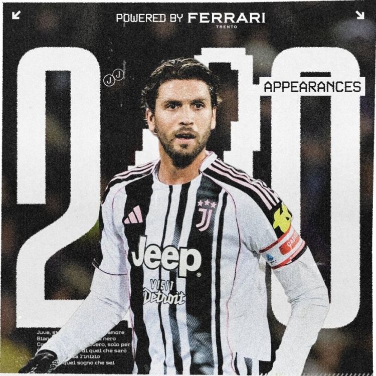 尤文官方确认:“对于洛卡特利来说,这是一个特别的夜晚,他为我们达成了200次出场:祝贺你!”