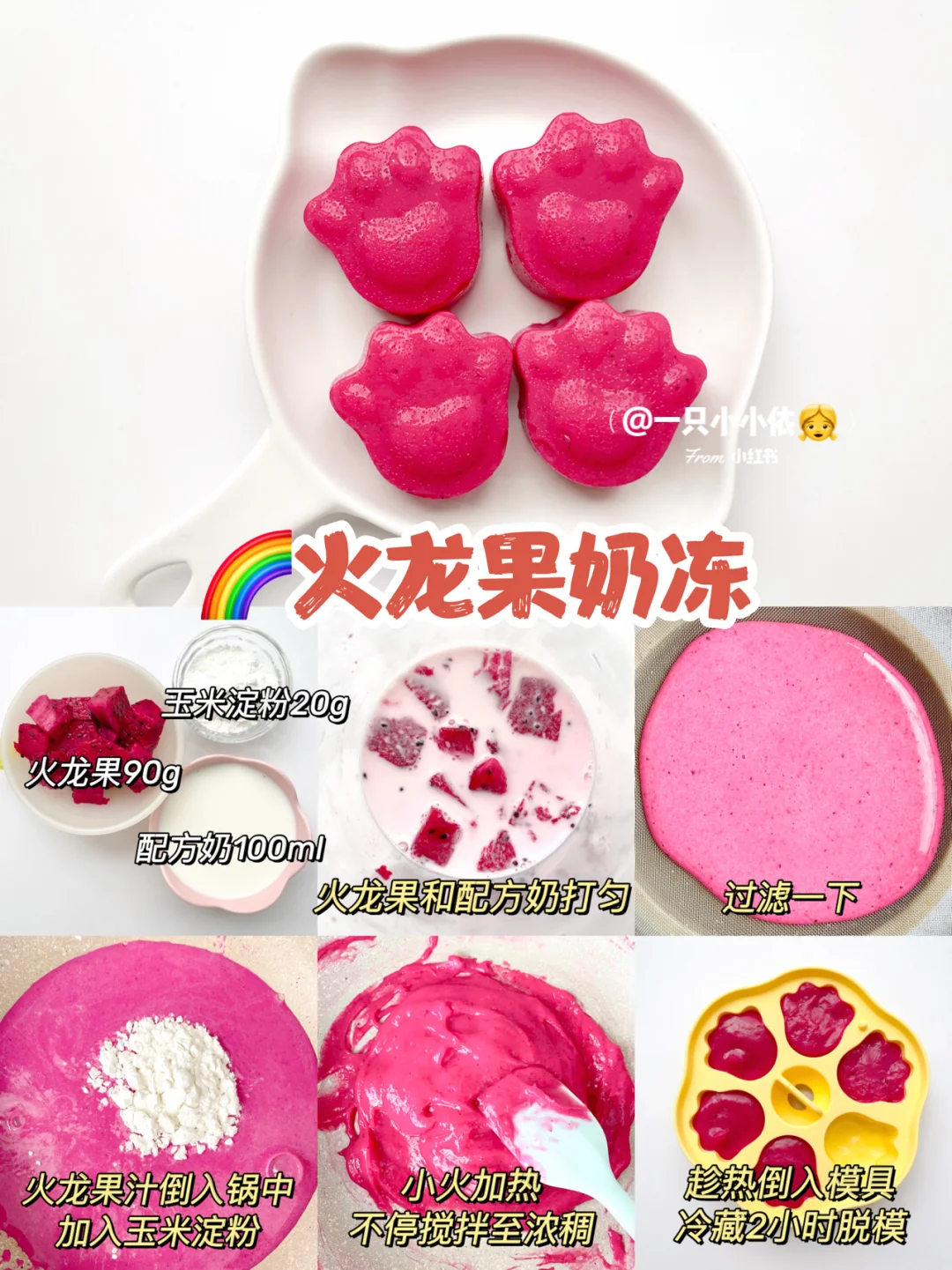 👉食材:火龙果90g、配方奶100ml、玉米淀粉20g