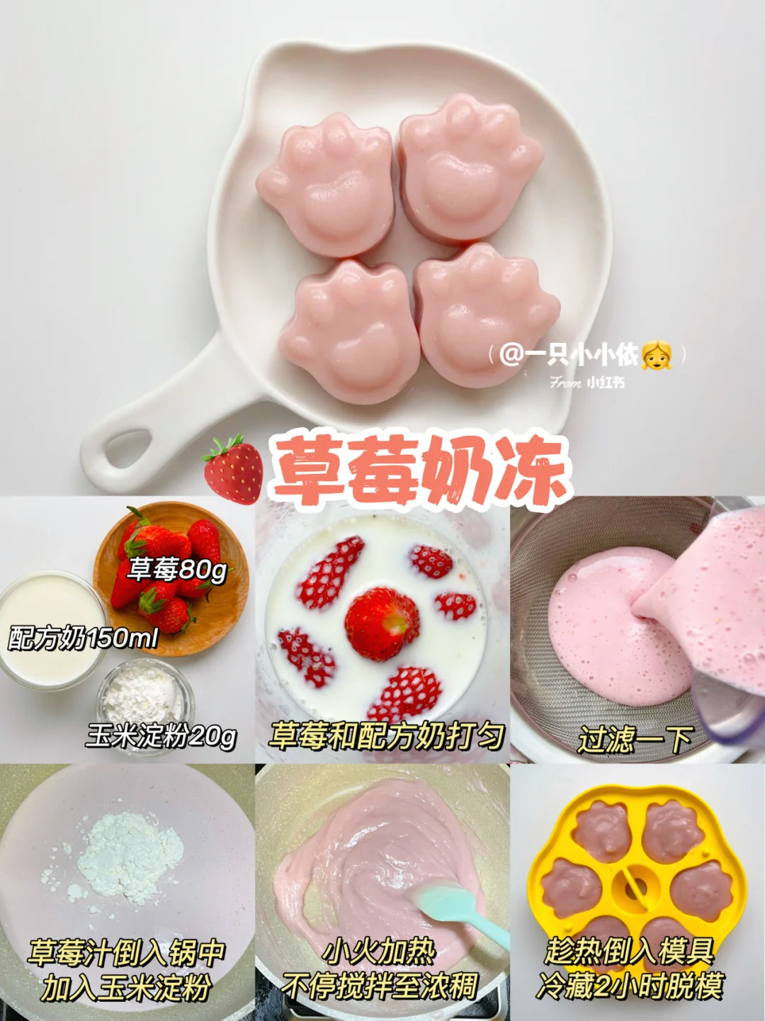 👉食材:草莓80g、配方奶150ml、玉米淀粉20g