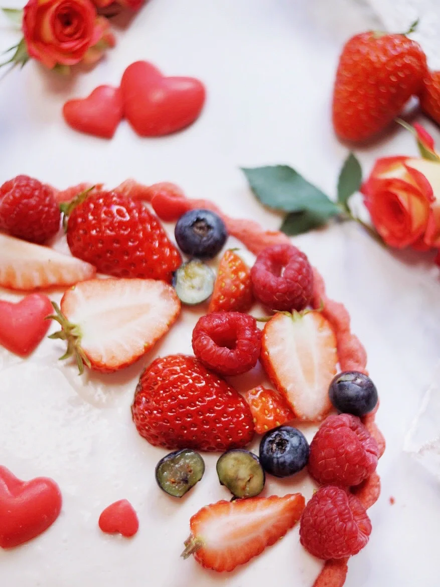 表面装饰:爱心巧克力 树莓 草莓 蓝莓