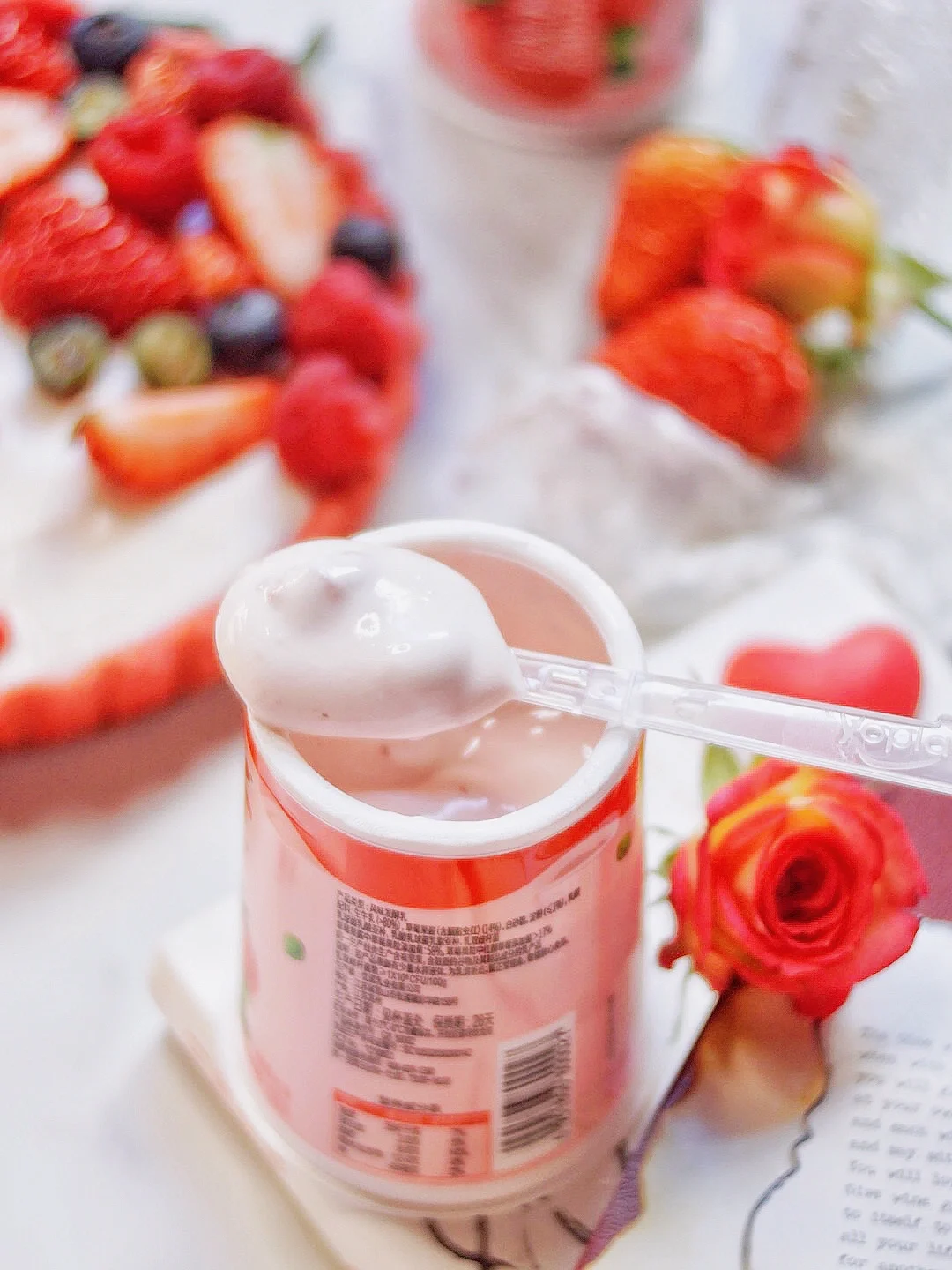 🌸这真的是我做的目前为止颜值zui高的甜品了🍰哪个女生看了不心动啊~表层酸奶入口浓郁顺滑,就像冰淇淋一样,用舌尖轻轻一抿就化了🍦整个入口口感上比我之前做的都要醇厚,优诺的法式酸奶真的hin不一样,奶味特浓,每一勺都能吃到饱满的草莓果肉🍓不管做甜品,还是跟吐司搭配🍞或者直接吃,都炒鸡美味呀~~~