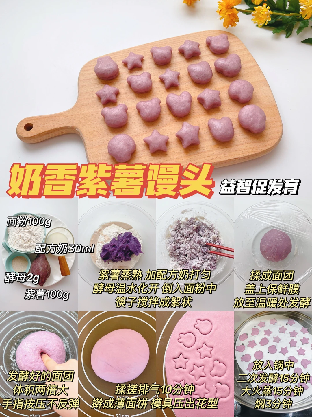 食材:紫薯、配方奶、面粉、酵母