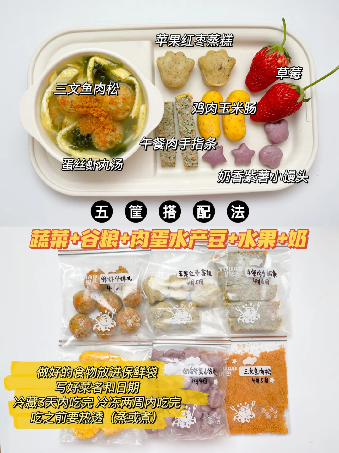 ✨五筐公式:蔬菜+谷粮+肉蛋水产豆+水果+奶
