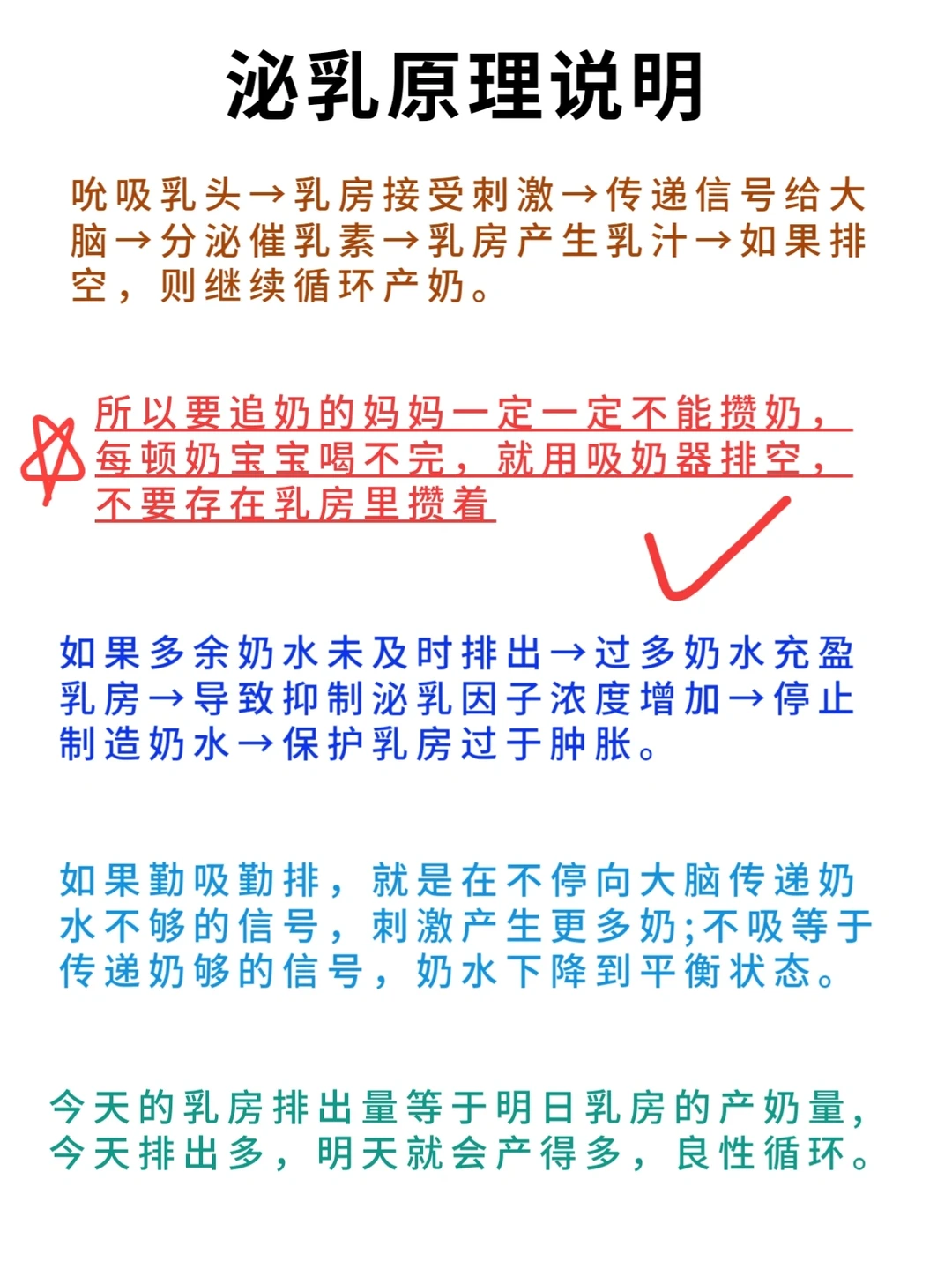 因为乳汁排出越多,就产的越多!所以每天要排空。今天比昨天多排了10毫升,那明天就会多产10毫升啦。