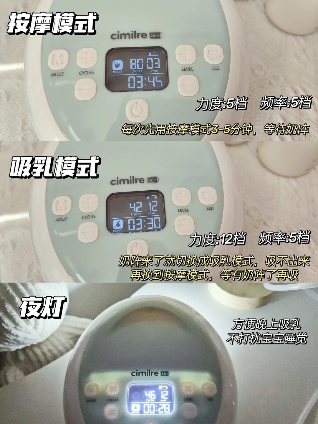 2.静音效果好,还有夜灯,晚上吸奶不会吵醒宝宝
