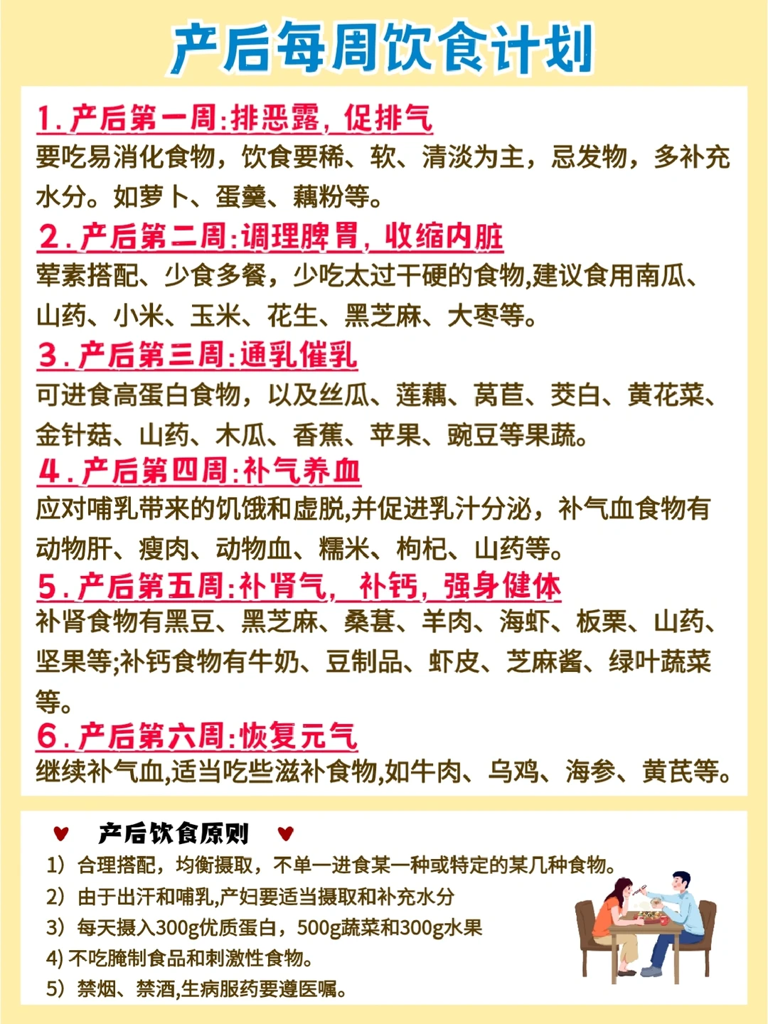 脏器恢复状态也和孕前差异不大,产后检查一下子宫和身体的恢复情况,注意补气,强健壮骨预防产后缺钙,可以多吃一些:奶制品、坚果、海产等等