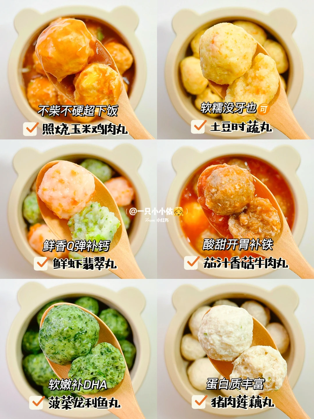 依依妹妹是丸子的铁粉儿,各种口味都很爱!今天跟姐妹们分享6种荤素搭配的自制丸子,有肉有菜有蛋,不干不柴、软糯好吃、补铁补钙👏🏻搭配面条、粥,或做成照烧/糖醋各种口味都可!也可以当做手指食物,锻炼宝宝抓握能力哦[斜眼R]