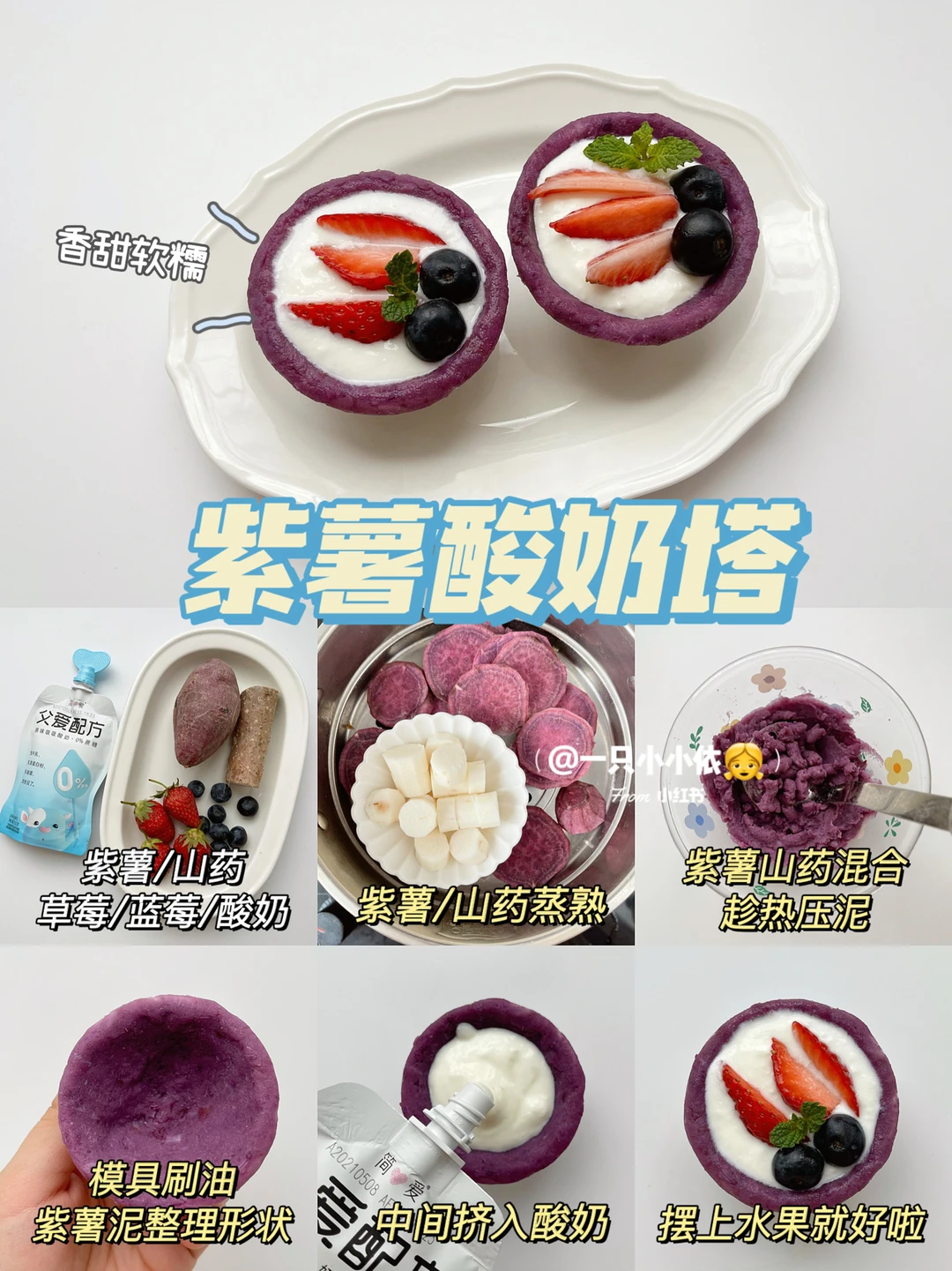 🔸食材:酸奶、紫薯、山药、草莓、蓝莓