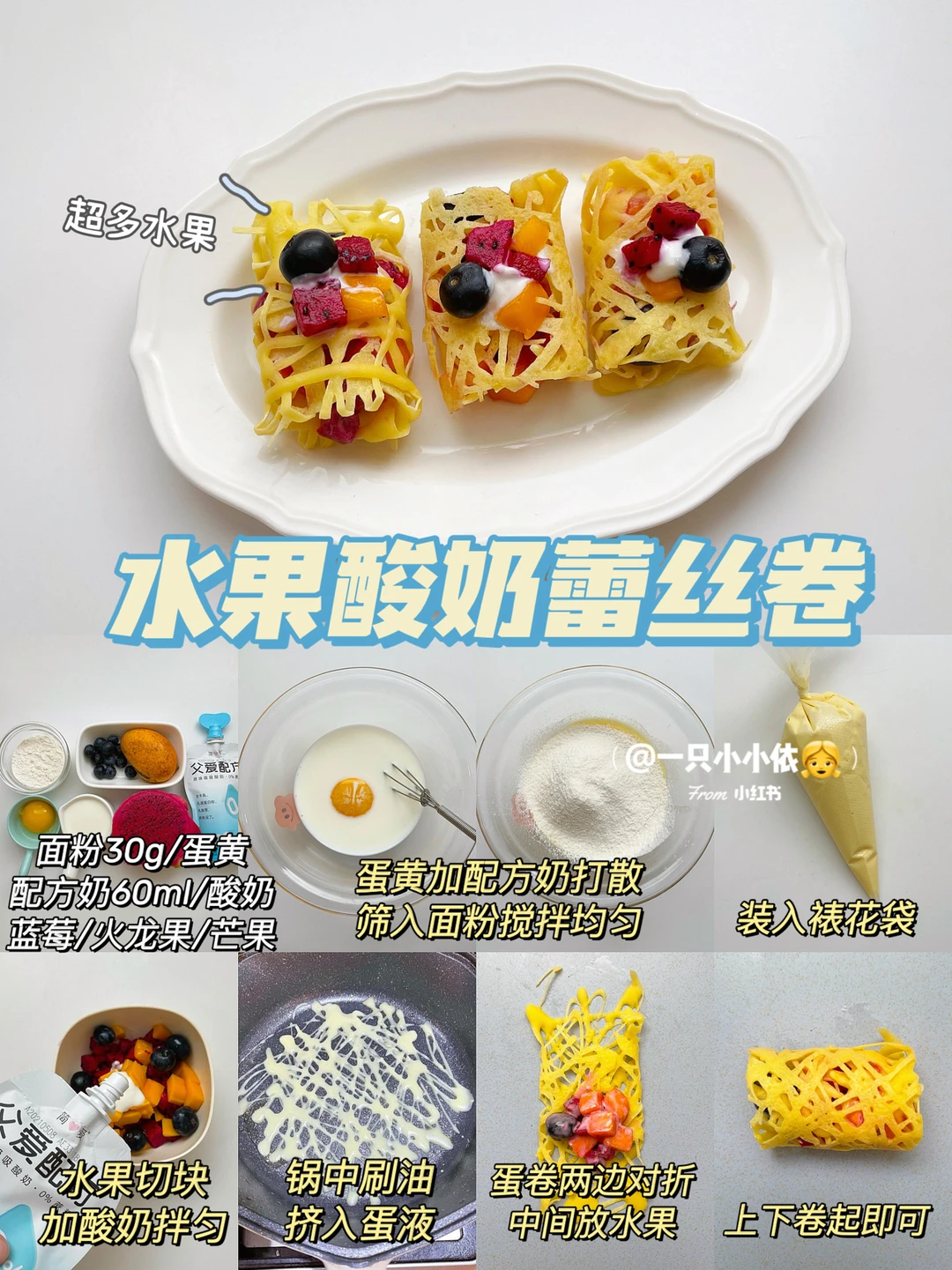 🔸食材:面粉、蛋黄、配方奶、酸奶、蓝莓、火龙果、芒果