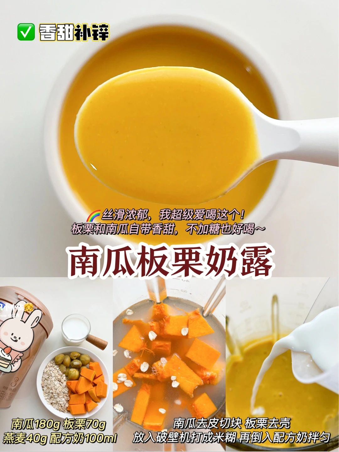 👉食材:南瓜180g、板栗70g、燕麦40g、清水500ml、配方奶100ml