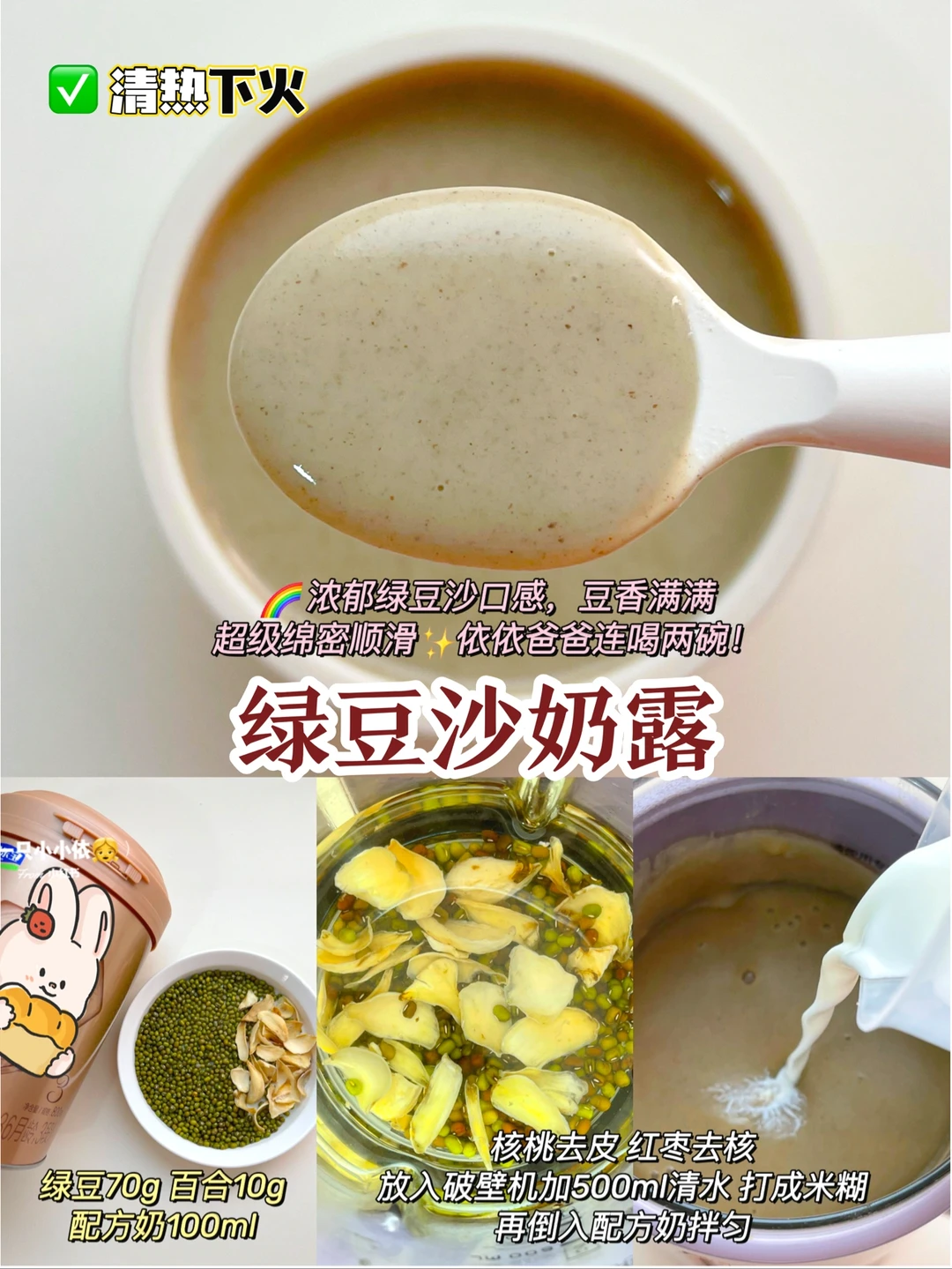 👉食材:绿豆70g、百合10g、水500ml、配方奶100ml