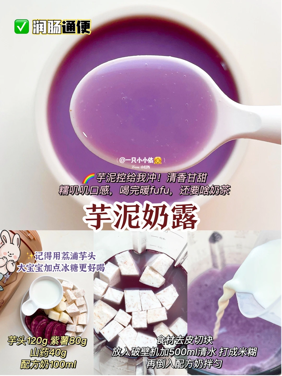 👉食材:芋头120g、紫薯80g、山药40g、清水500ml、配方奶100ml