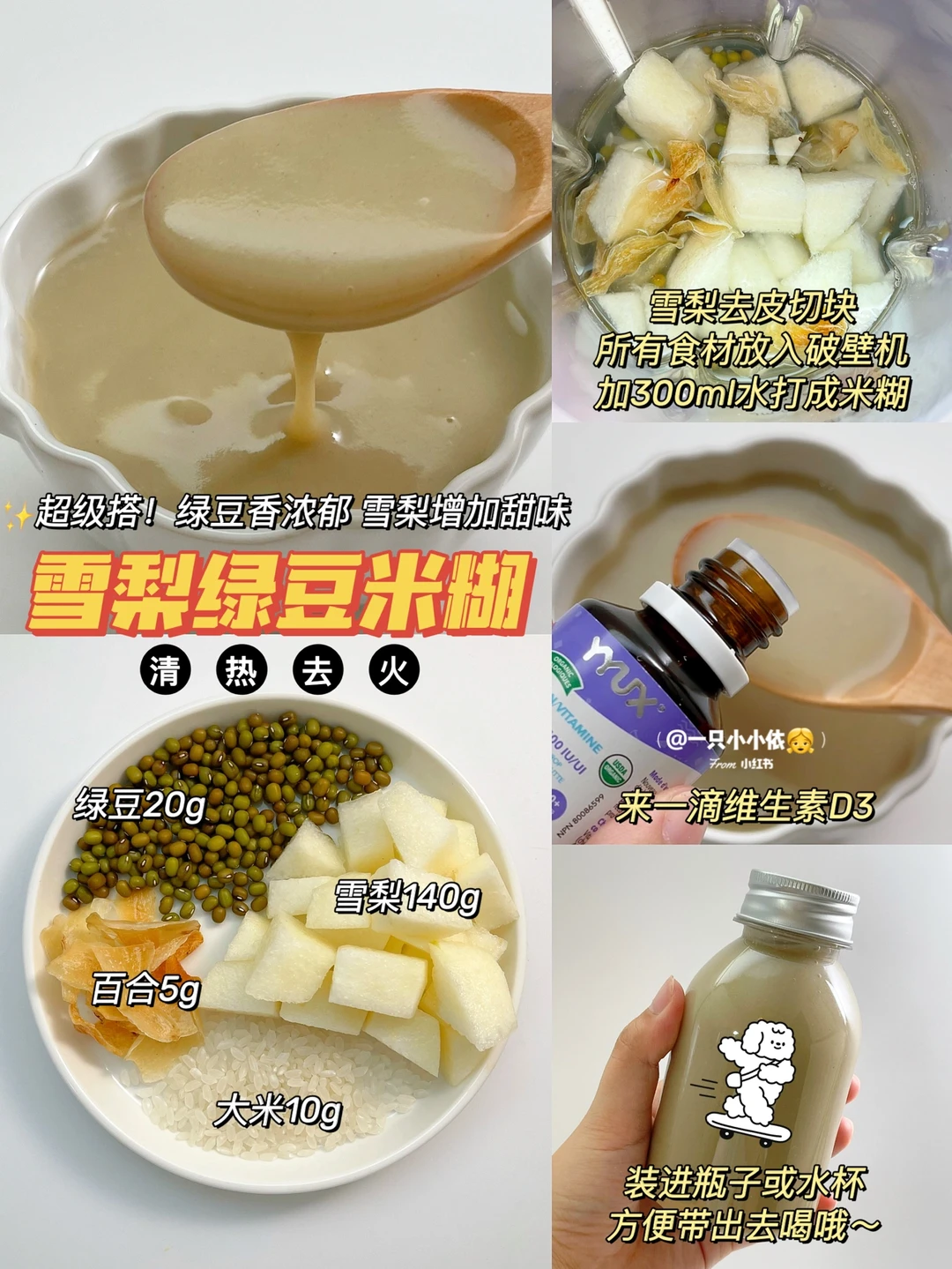 ✨食材:绿豆20 g、百合5g、雪梨140g、大米10g、清水300ml