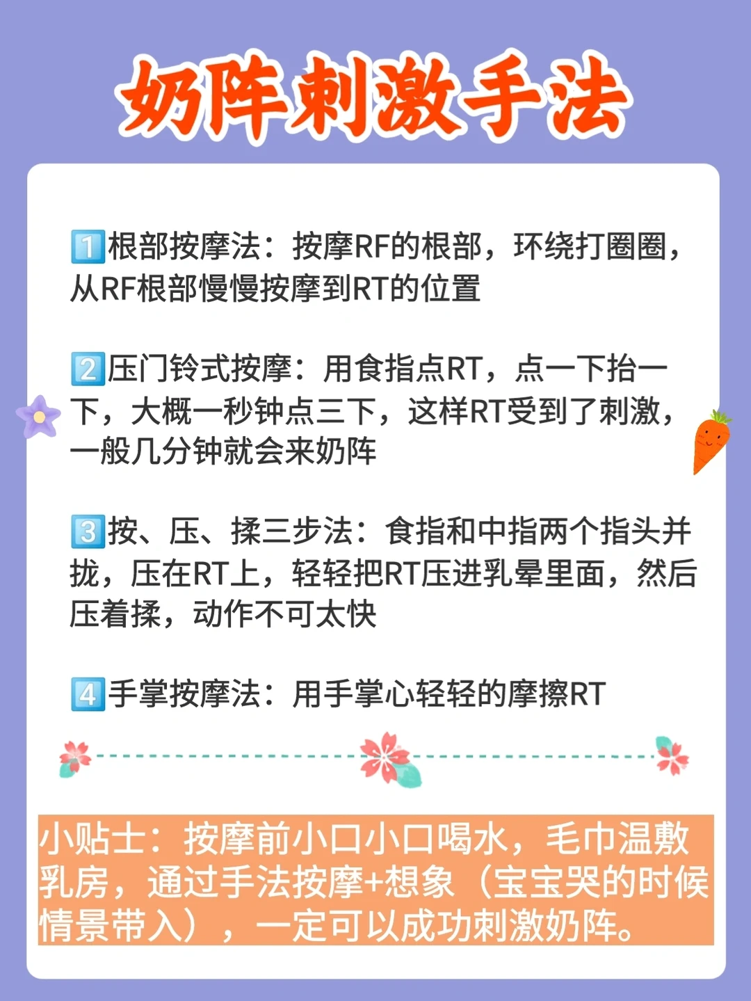 🌸1、奶阵刺激法(在主页里可以翻看我之前发布的刺激奶阵的笔记)