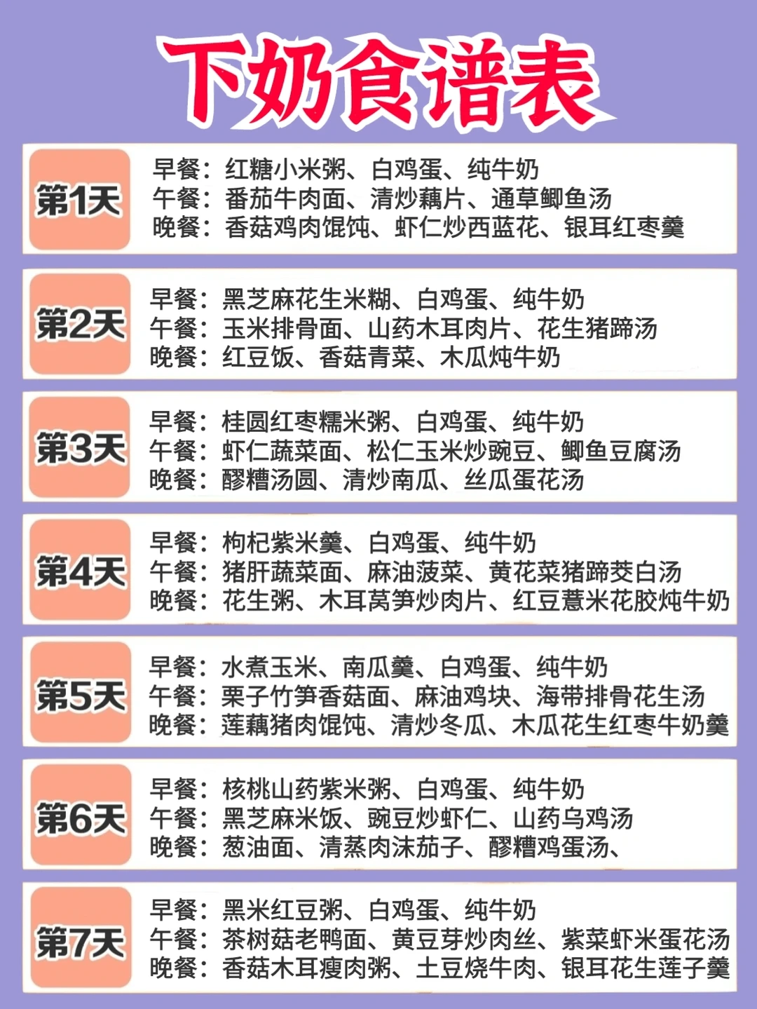 4、追奶期间下奶食谱