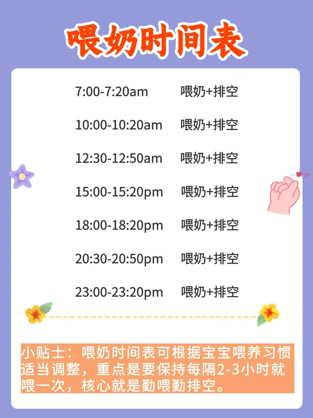 1、一天内规律喂奶时间表