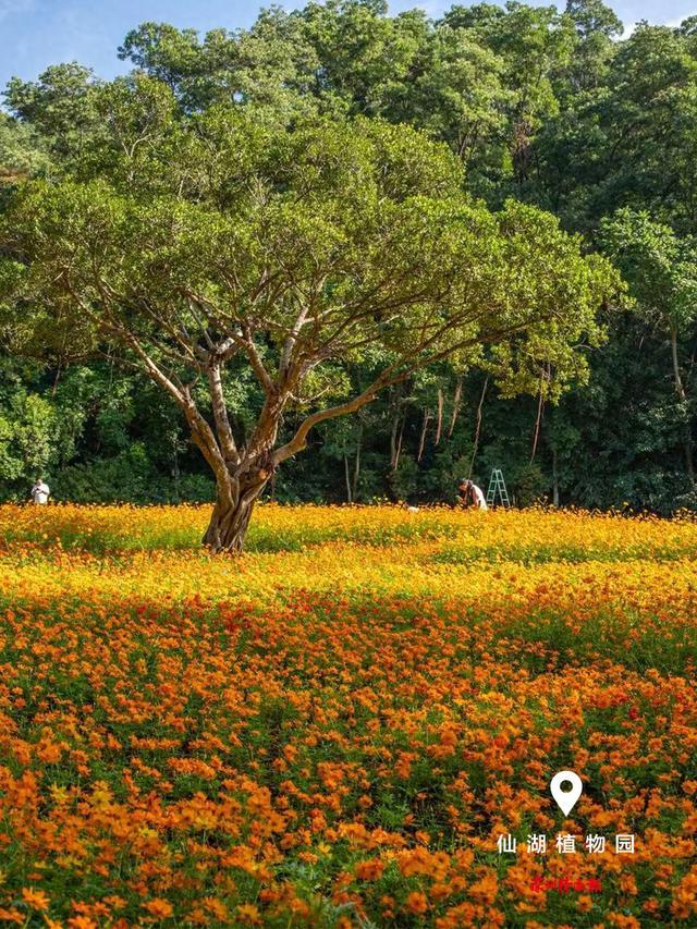 近日,2025深圳市仙湖植物园秋花集展出逾十万株以菊花、向日葵和百日草为主题的应时花卉。菩提树下,数千平的金色花海绚烂绽放,引人注目。在这里,种下了20余种向日葵,同时,巧妙混播百日草、硫化菊、波斯菊等多样花卉,限定版的金色浪漫令人惊艳。