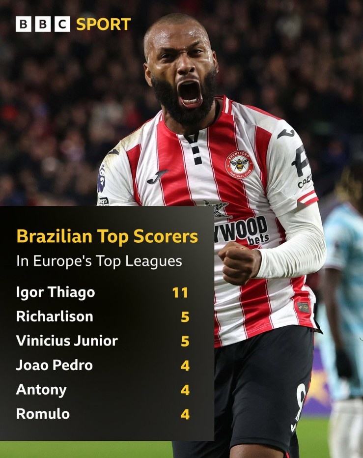 直播吧11月30日讯在本轮英超,布伦特福德3-1击败伯恩利,伊戈尔·蒂亚戈梅开二度。