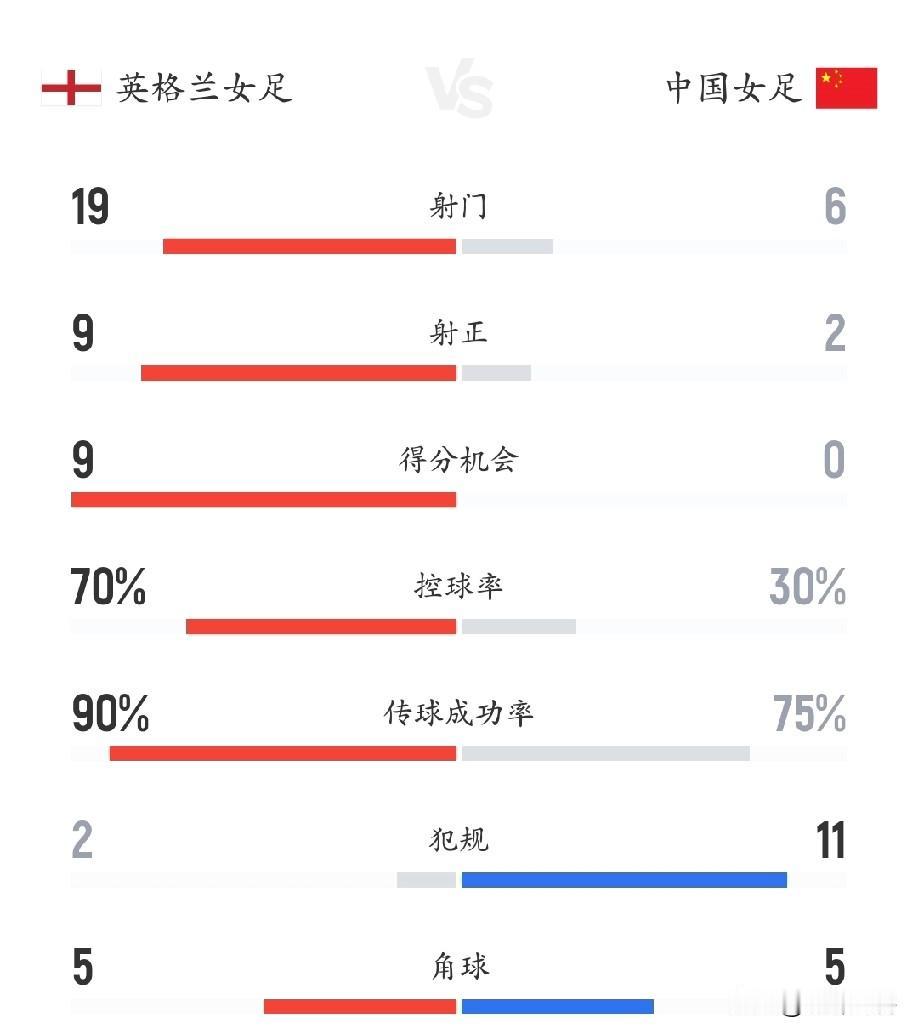 昔日铿锵玫瑰如今却成鱼腩之师,中国女足0:8惨败英格兰女足也向世人表明了一个事实:没落的不仅是中国男足,还有我们曾经引以为豪的中国女足! 今年凌晨一场国际友谊赛在温布利大球场进行,然而在上座率达到74611人的见证下,中国女足却被对手打的毫无还手之力最终以0:8败下阵来,要知道在十年前的永川国际邀请赛中,我们曾以2:1战胜过英格兰,如今过去了仅仅十年时间,双方的差距就如此明显,而比赛中的数据更让人揪心,中国女足的控球率仅有30%,而在射门方面英格兰19射9正打进8球,中国队仅有9次射门2次射正。 如此大的差距中国女足要是赢了才是见鬼了呢![作揖][作揖][作揖]