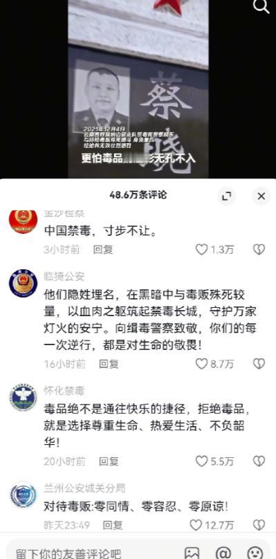 48.6条评论全是致敬缉毒警! 460万点赞,13.6万人收藏,40.7万人转发,全是民声,正义之声,中国禁毒是刻在每一个中国人骨子里、基因里、血液里的使命。 皆是名义的呐喊,坚守脚下这每一寸山河不被破坏,对毒品“零容忍”更是民心所向。 我想质问一下支持吸毒记录封存的教授律师们,你们一心一意为吸毒人员着想,那你们有为我们这些遵纪守法洁身自好的公民们着想过吗?艾滋病受保护后,你找的对象有没有艾滋病你不清楚,取消户口簿就能结婚后,你不清楚你配偶三代以上是不是中国人,吸毒封档后,你不确定你的另一半是不是瘾君子或隐形吸毒者,代孕如合法,中国人将快速消失…… 现在,你们又说吸毒人员也有重新做人的权利,那么请问牺牲的缉毒警察有重生的权利吗?!如果吸毒人员复吸或者让其他人也染上毒瘾,你们这些为吸毒人员摇旗呐喊助纣为虐的教授律师,要不要接受法律的严厉制裁!?