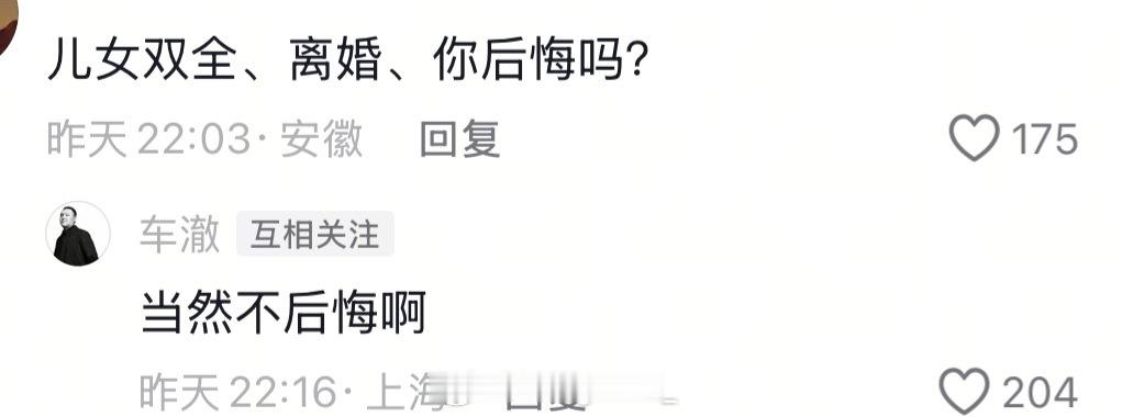 车导风波之后首度更新动态,还在评论区回应离婚:不后悔离婚,时间倒退还会离婚。车导