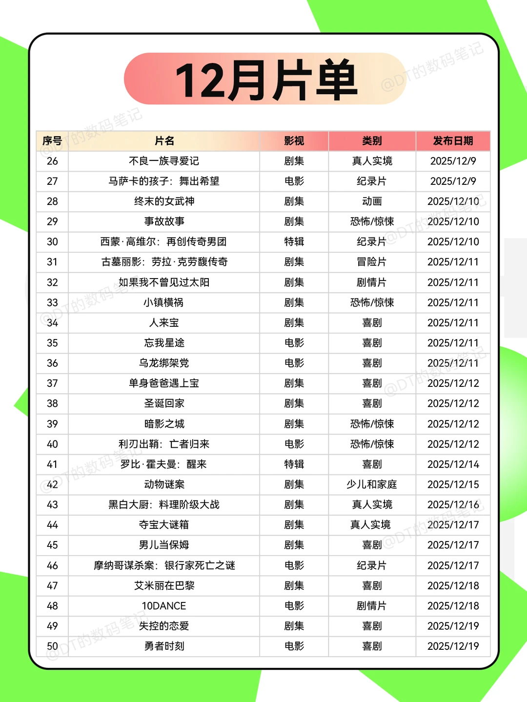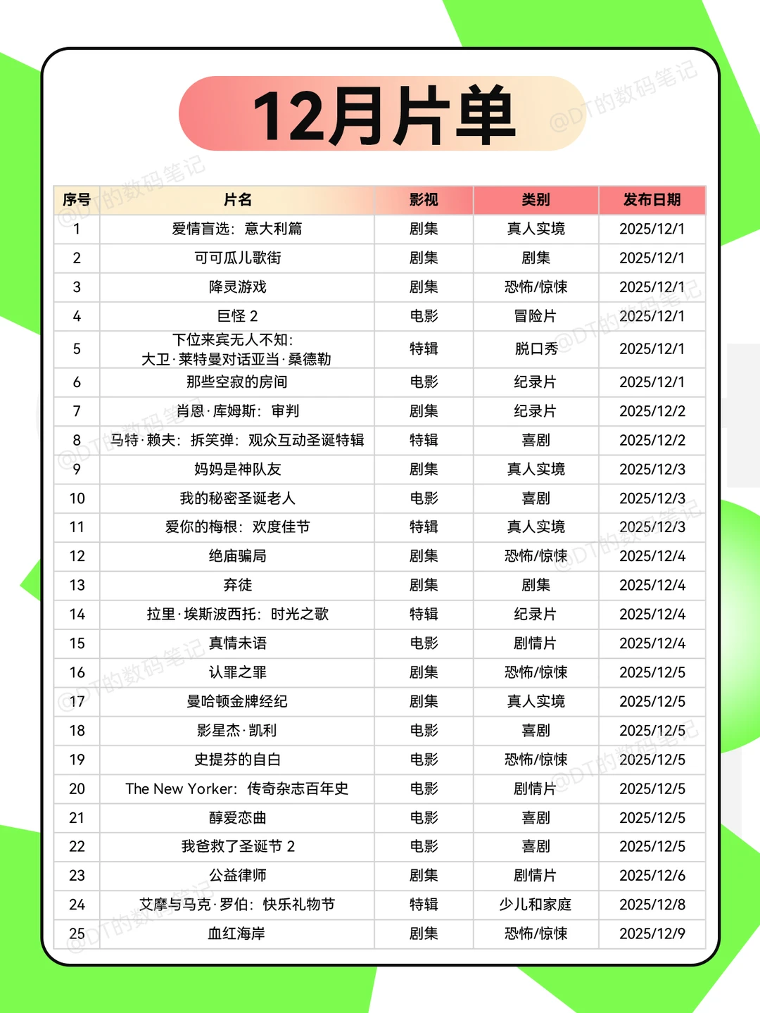 11月底啦,2025年最后一个月的奈飞片单汇总分享给你们~