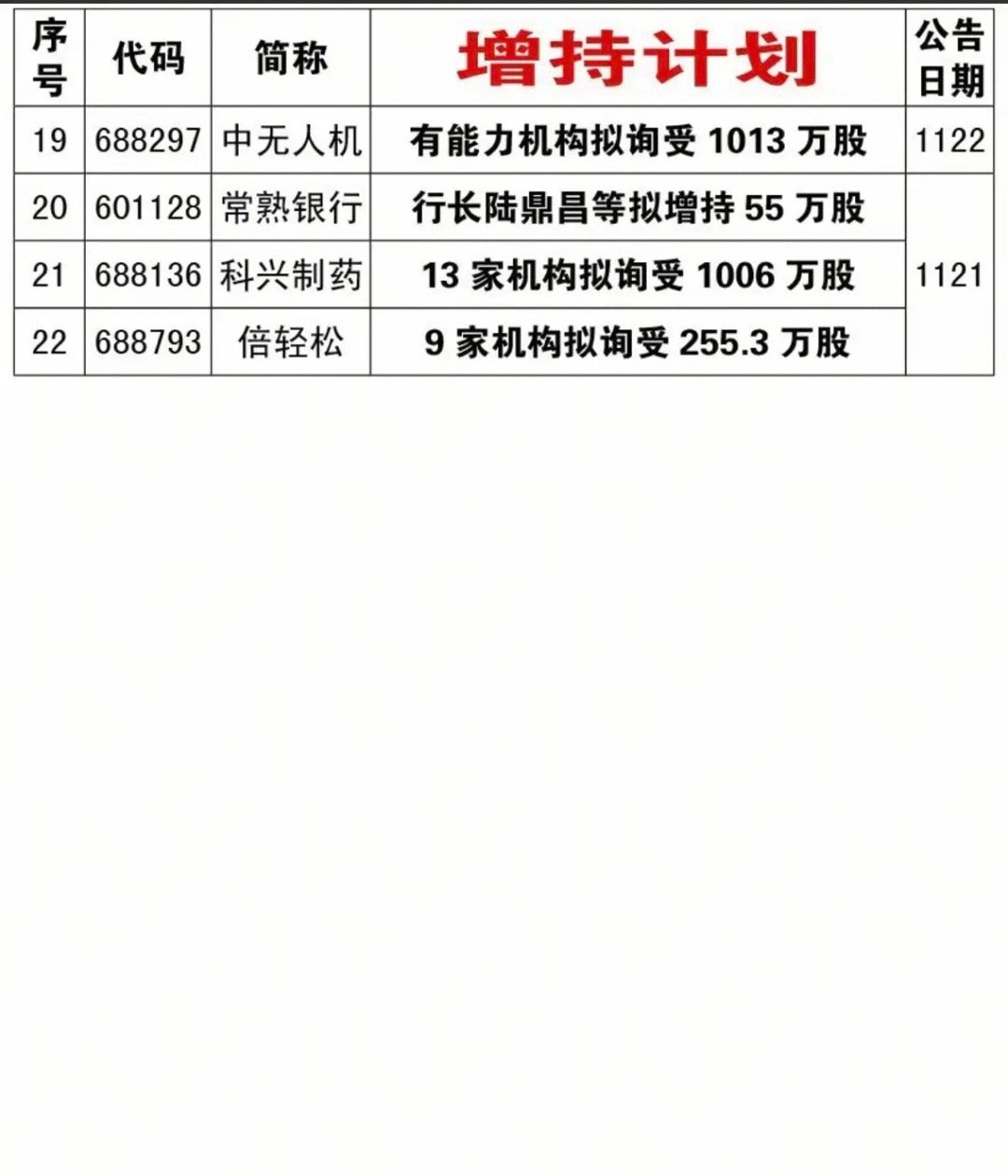 11.30日 本周统计:22公司披露增持计划!本周累计有22家公司披露增持计划。