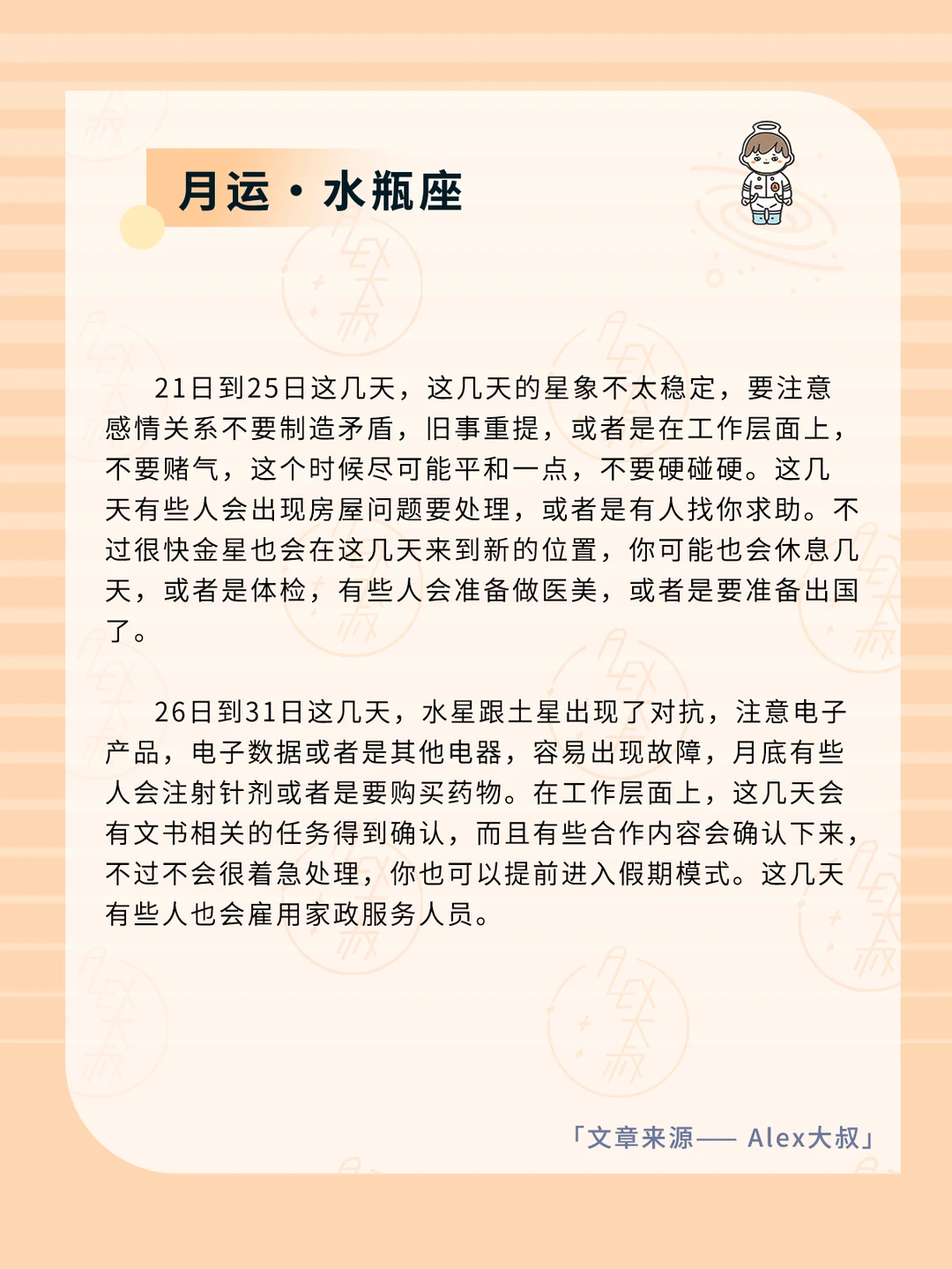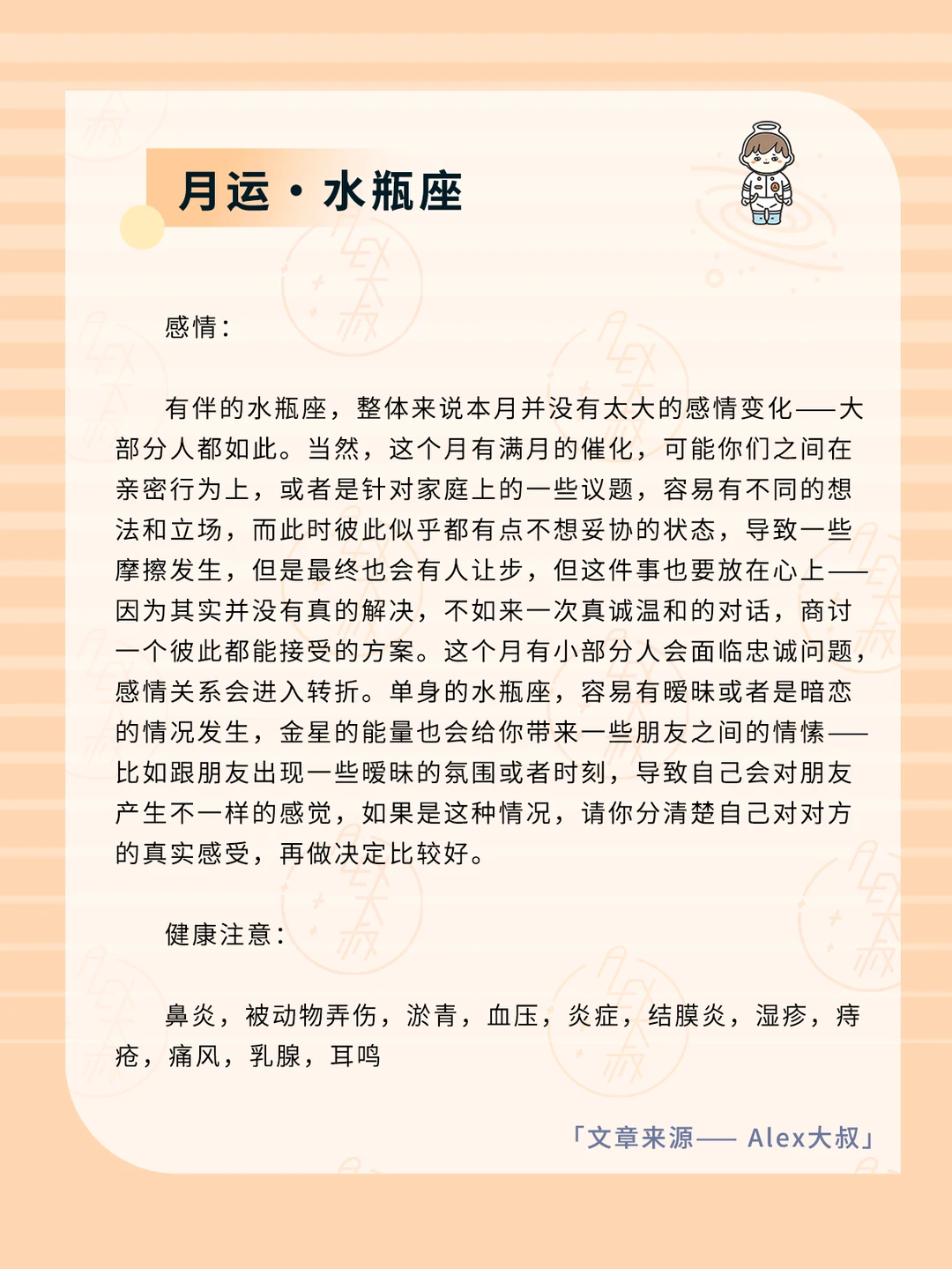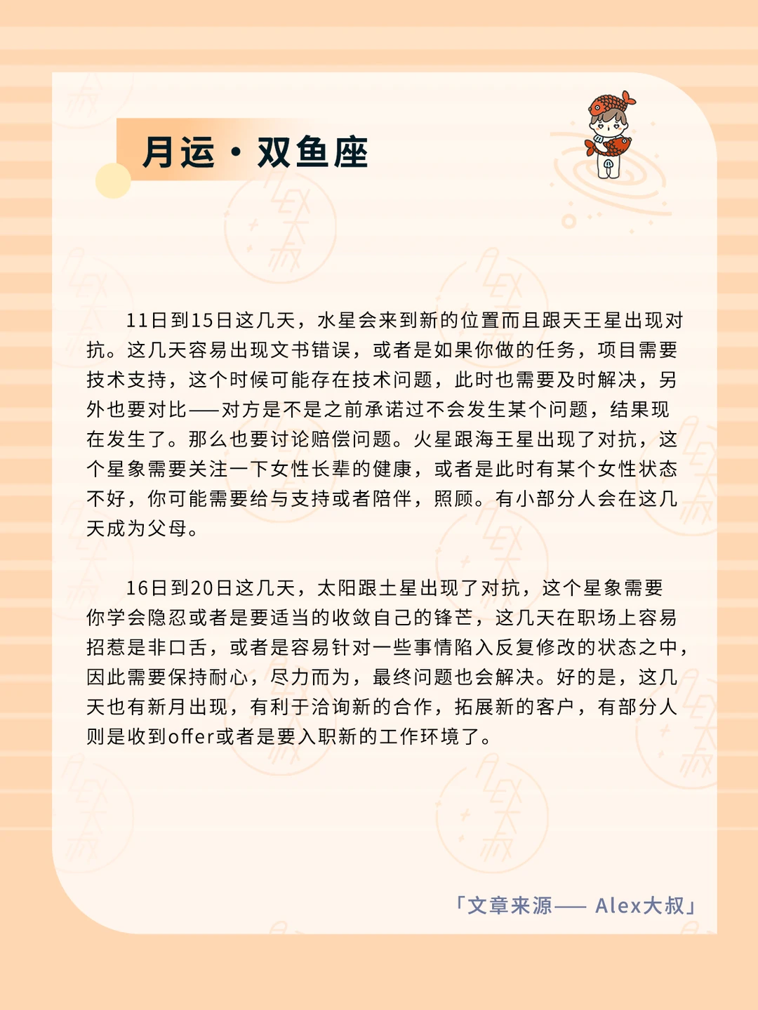 ALEX大叔 我的星座 星座运势 双鱼座运势 水瓶座运势
