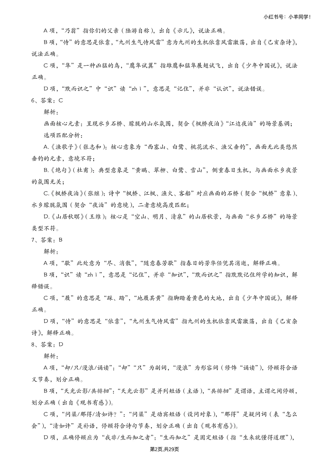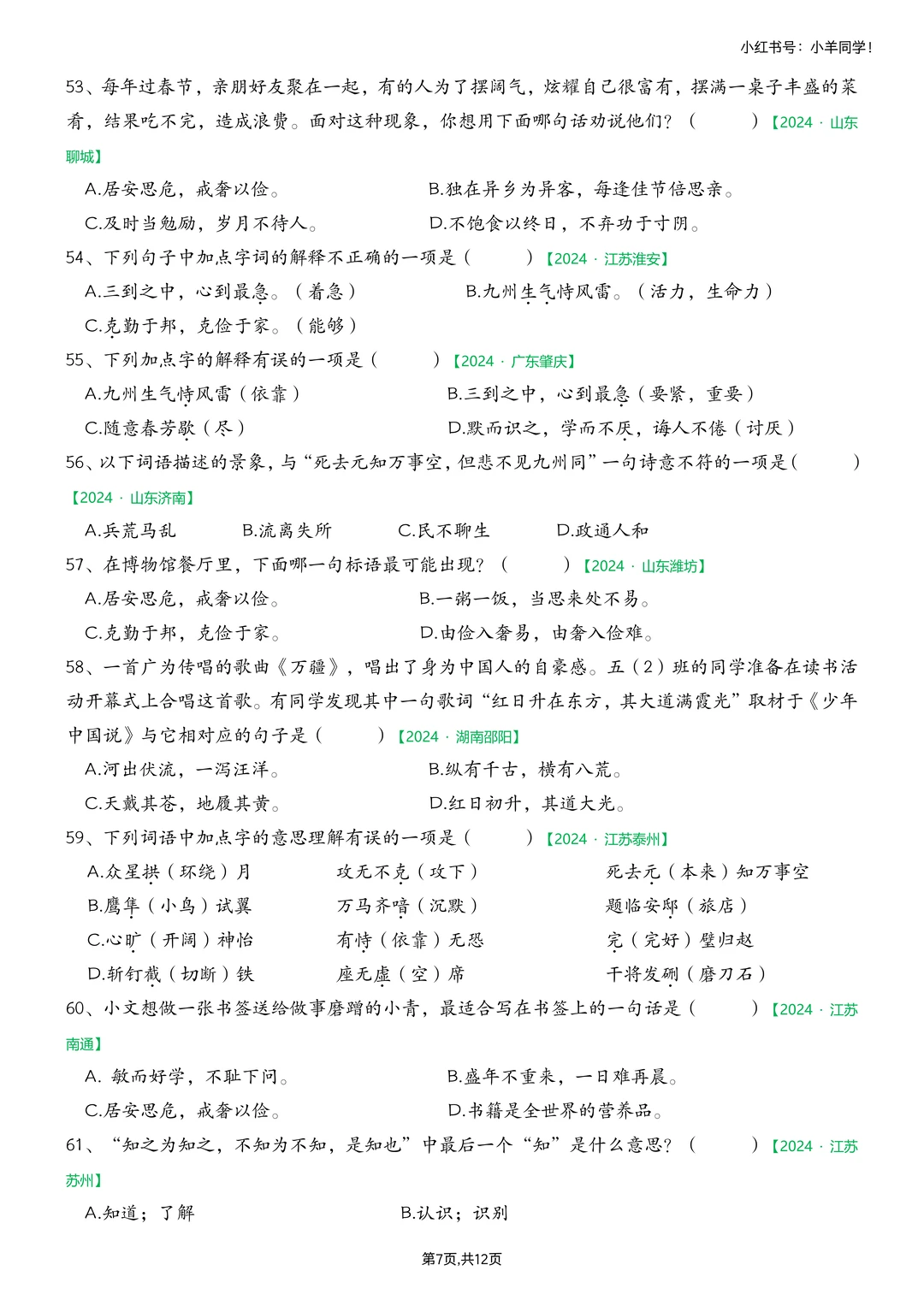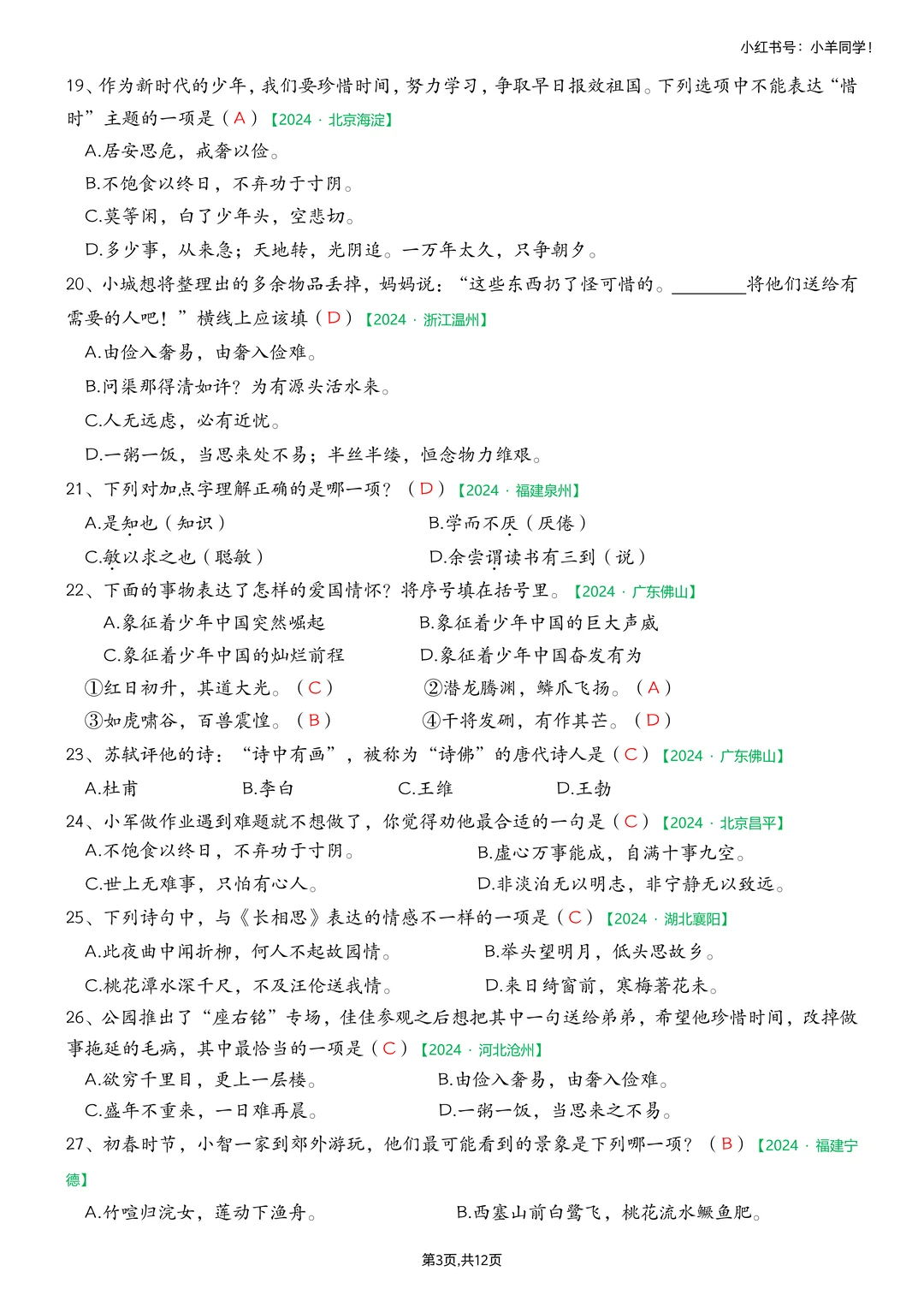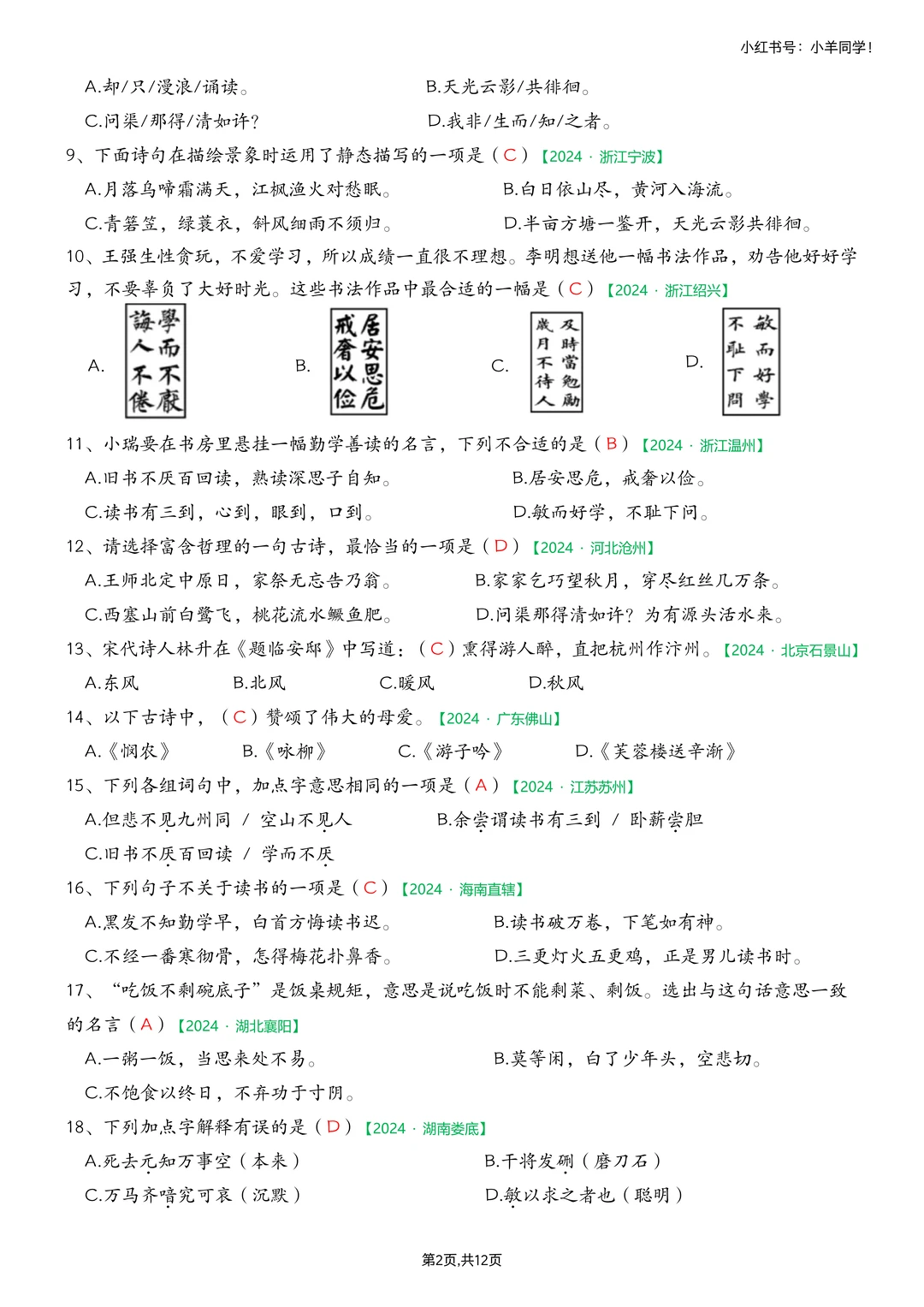 是以2024-2025学年各地区期末真题试卷整理,其中理解性选择较多,对古诗的理解足够透彻,方可错误遗漏,不然很容易出错。
