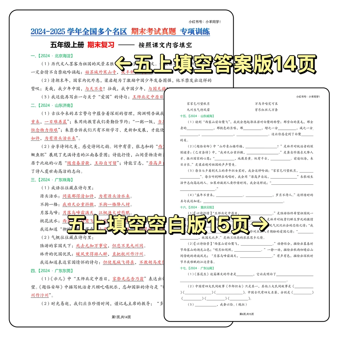🎈这套习题参考了近百个地区的2024-2025学年期末真题卷。很多地区都是相似题型,我选取了其中重中之重的,超高频考点的试题进行的总结。