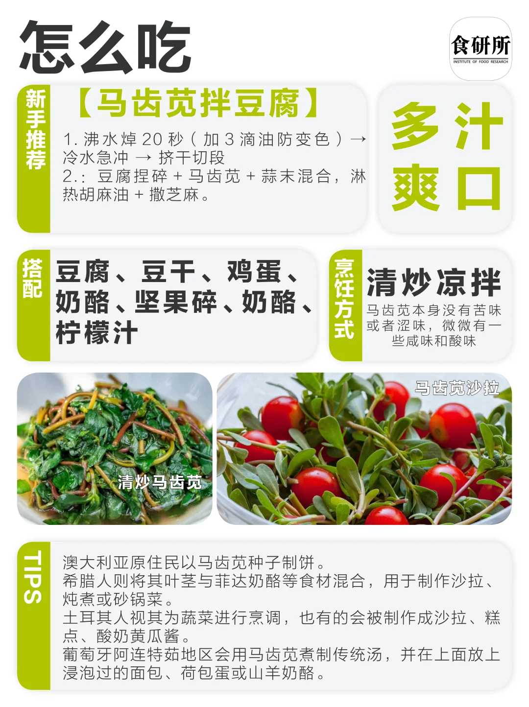 [拔草R]马齿苋的水分含量高达 90% 以上,所以吃起来多汁爽口。和其他野菜不同的是,马齿苋本身没有苦味或者涩味,微微有一些咸味和酸味。