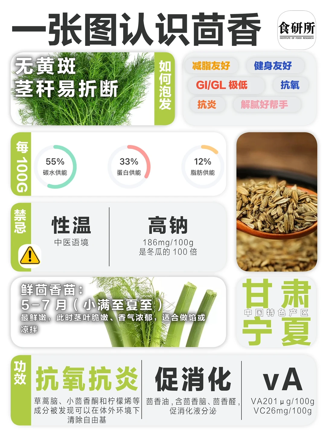 [种草R]主调是甘甜,但又混着刺激气味解腻回香,适合搭配肉类海鲜或制作饺子油条等面食,北方人眼中是夏日蔬菜,而南方多用茴香籽作为调料