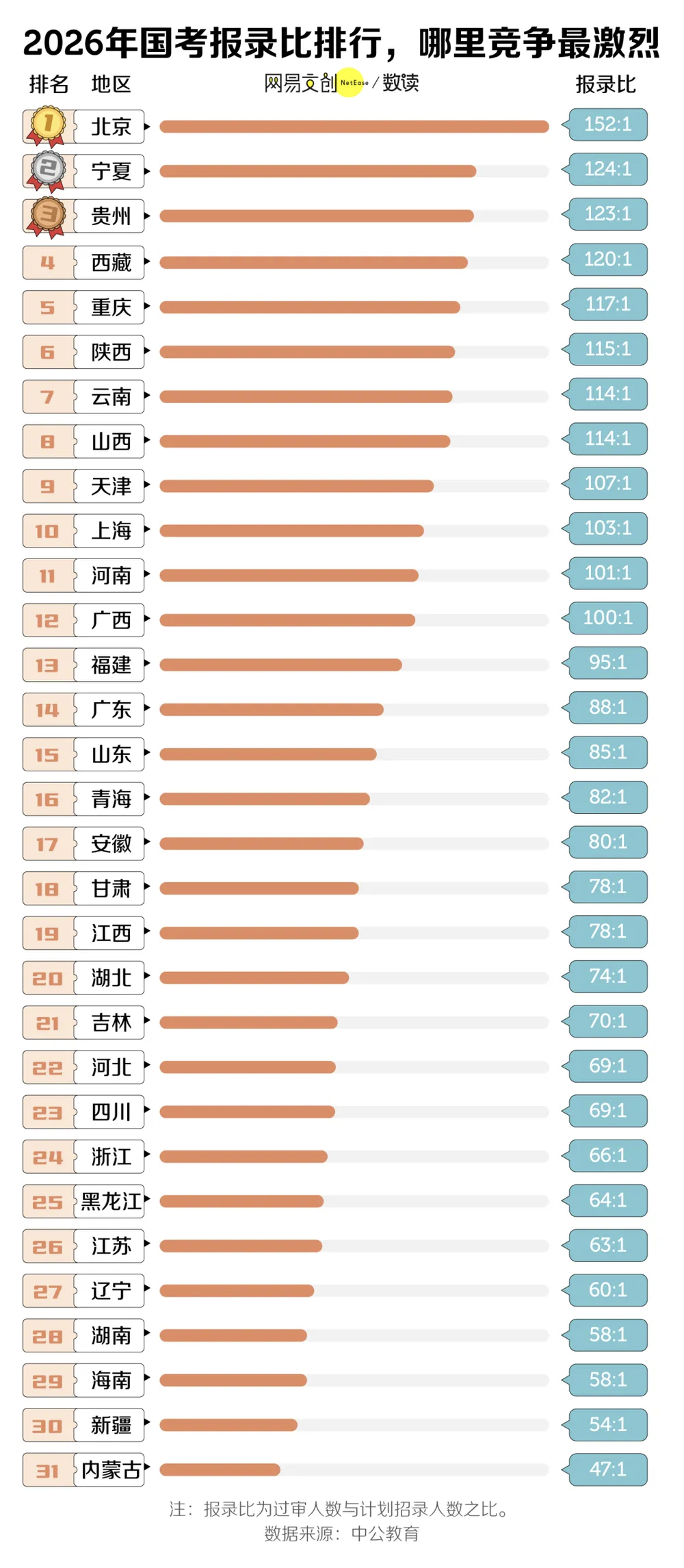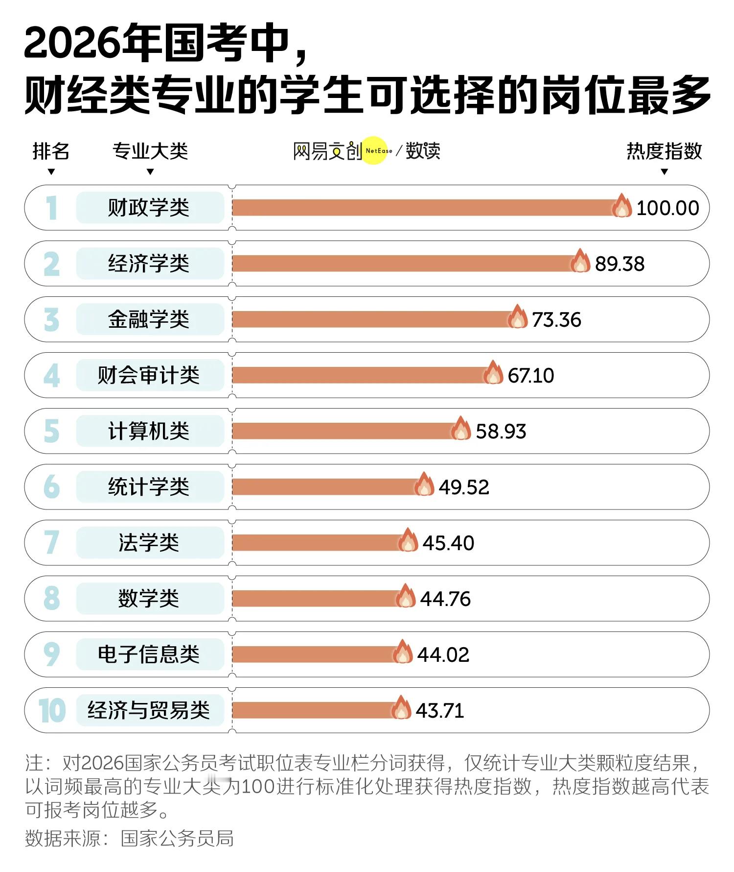 2026年国考371.8万人 国考竞争太激烈了。之前是汉语言、计算机、法学等专业可选择岗位最多,现在变成财政学类、经济类。(图片来自“网易数读”)