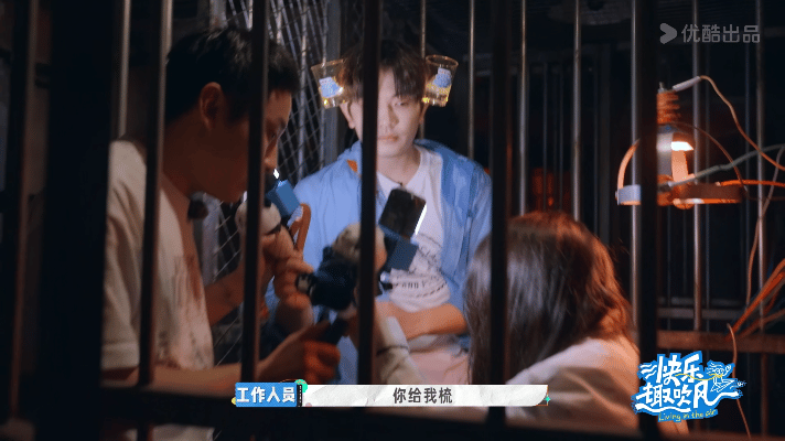 徐志胜被贴脸壁咚 哦莫哦莫!谁能想到壁咚名场面会发生在密室牢房里 志胜要给“精神不正常”的NPC梳头,迟迟不敢动手,NPC直接起身把他圈在栏杆上,这贴脸壁咚也太刺激了 又怕又不会梳头的志胜也太可爱了