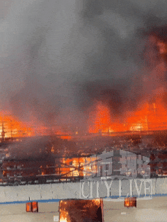 据视频显示,熊熊燃烧的火焰伴随着滚滚浓烟从建筑内向外喷涌,厂房被烧至仅剩钢架结构,并不时传出炸裂声。附近群众正在紧急疏散,消防人员已经抵达现场全力展开救援。